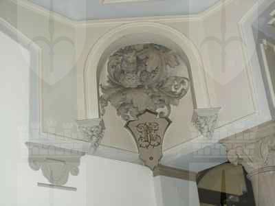 ELEMENTO ORNAMENTALE (esterno): Edicola a tutta altezza in corrispondenza dell'ingresso principale, paraste in pietra binate con motivi geometrici a forma piramidale a lato del portale, balaustre in pietra bianca in corrispondenza dei balconi del primo e secondo piano, mensole a voluta a sostegno dei balconi, timpano triangolare sopra alle finestre del secondo piano (PICT0039.JPG). ELEMENTO ORNAMENTALE (esterno): Edicole con cornici in pietra bianca a decorazione delle finestre del primo e del secondo piano; al primo piano, con specchiatura decorata da motivi geometrici sotto al davanzale; al secondo piano con timpano triangolare a completamento dell'architrave. LAPIDE (esterno): A sinistra dell'ingresso principale a livello del primo piano, lapide commemorativa in marmo ornata da corone di alloro, riportante la dicitura "Alle finestre e lungo le scale di questo palazzo il XXIII aprile MCMXLIV cinquanta pendenti salme di martiri mostrarono alla città inorridita la ferocia dell'irato germanico tiranno ciecamente sfogata su uomini di liberi sensi, infermi prigionieri in sue mani, a perpetuo ricordo dei sacrificati pose il comune, XXIII aprile MCMXLVII". BALDACCHINO (esterno): Elemento in ferro verniciato decorato da sottili volute in sintonia con il parapetto della scala di accesso, posto a protezione dell'ingresso all'alloggio del custode (PICT0031.JPG). FONTANA (interno): Posta nell'atrio d'ingresso, in prossimità del cortile centrale, fontanella a muro in pietra bianca con raffigurazione di volto umano. STEMMA (interno): In corrispondenza degli angoli, sul soffitto dell'atrio di ingresso, quattro stemmi della famiglia Rittmeyer in pietra bianca con iniziale "R" dorata e decorazioni floreali in pietra bianca (PICT0046.JPG). LAPIDE (interno): Nell'atrio di ingresso, lapide marmorea riportante la seguente dicitura: "In occasione del centenario del conservatorio di musica Giuseppe Tartini, la città di Trieste riconferma il proprio sostegno all'operosità dell'Istituto con l'augurio di un futuro di eccellenza nel segno dell'universalità dell'arte musicale. 1903-2003" ELEMENTI ORNAMENTALI (interno): In corrispondenza della volta a padiglione del vano scala principale, decorazioni in stucco bianco su sfondo azzurro. ELEMENTI ORNAMENTALI (interno): A decorazione dell'aula magna, elementi in stucco e pietra bianca; motivi geometrici in corrispondenza della volta a botte, motivi floreali in corrispondenza del fregio ornamentale, forme antropomorfe in corrispondenza dei capitelli a completamento delle lesene ed ancora motivi floreali a decorazione della superficie delle lesene stesse.