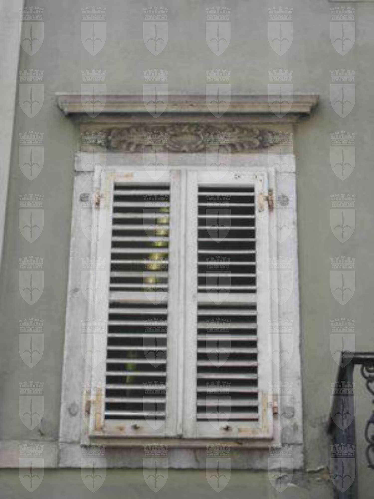 ELEMENTI ORNAMENTALI (esterno): Decorazioni con motivi floreali e vegetali a livello dei capitelli delle lesene e delle trabeazioni dei fori finestra FREGIO (esterno): Fregio decorato da motivi vegetali sotto lo sporto di linda BALCONE (esterno): Balcone con parapetto in ferro battuto al primo piano MENSOLE (esterno): Mensole a voluta in pietra bianca a sostegno dal balcone in ferro battuto