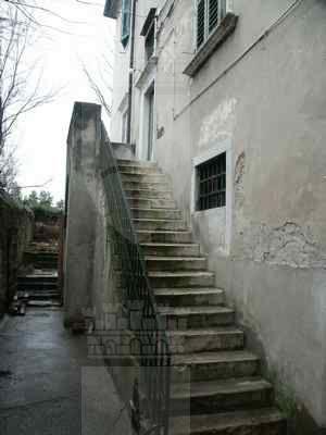 Corpo edilizio settecentesco posto alle pendici del colle di S. Giusto, integrato nel borgo della città vecchia. Sviluppo su due piani fuori terra, più sottotetto e piano seminterrato ad uso cantina. Articolazione in due corpi di fabbrica disposti ad "L" a formare un cortile interno con accesso indipendente, delimitato sugli altri lati da muri di contenimento a strutture arcuate in pietra arenaria. Distribuzione interna caratterizzata da un unico vano scala. Strutture portanti verticali in muratura di pietrame a sacco, murature perimetrali in pietra arenaria sbozzata a corsi suborizzontali; solai in volte di elementi di laterizio in corrispondenza dei corridoi di distribuzione interna, strutture orizzontali lignee in corrispondenza degli appartamenti privati. Strutture di copertura lignee con manto in coppi curvi rossi. Scala con elementi in pietra appoggiati su muratura portante laterale e setto centrale. Scala esterna in pietra di accesso al piano terra rialzato. Facciate trattate in maniera omogenea su tutti gli affacci.