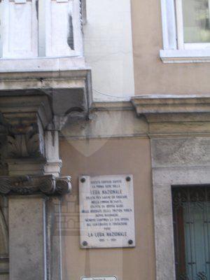 L'edificio, di cui non è noto l'autore, è stato costruito attorno al 1820-1830 per il negoziante genovese Agostino Samengo. Nel 1852 l'immobile fu sopraelevato su progetto dell'architetto Pietro Palese, mentre al 1931 risalgono le modifiche alla facciata del pianterreno. Negli anni Ottanta l'immobile è stato ristrutturato, dopo l'acquisizione da parte della Cassa di Risparmio di Trieste. Nella casa fu ospitato varie volte il violinista Nicolò Paganini. L'edificio è stato la prima sede della Lega Nazionale, come attestato dalla targa commemorativa posta accanto all'ingresso dello stabile nel 1991, anno del centenario della fondazione.