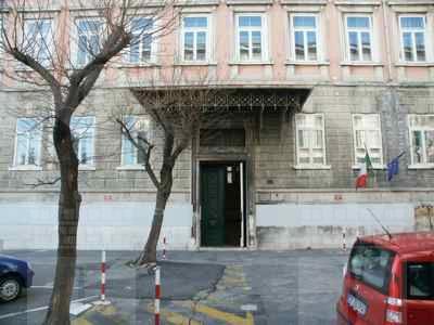ELEMENTO ORNAMENTALE (esterno) Paraste di ordine gigante rifinite ad intonaco rafforzano le fasce d'angolo delle facciate sul fronte strada. ELEMENTO ORNAMENTALE (esterno) Fascia ornamentale di coronamento della facciata con doppi fregio; quello inferiore decorato da motivi geometrici; quello superiore decorato da decorazione continua a greca. ELEMENTO ORNAMENTALE (esterno) Portale monumentale in corrispondenza dell'ingresso di Via della Bastia, dotato di cornice modanata in pietra bianca di notevoli dimensioni; tettoia metallica di grandi dimensioni a protezione dell'ingresso, decorata da elementi di sostegno reticolari decorati da motivi geometrici. ELEMENTO ORNAMENTALE (esterno) Sulla Via della Bastia, agli estremi della facciata, attici con piccole finestre quadrate; decorazione di facciata a lesene con capitello ionico, timpano modanato con dentelli ed acroteri. ISCRIZIONE (interno) Sulla parete di fondo dell'atrio di ingresso di Via della Bastia, iscrizione in caratteri corsivi riportante la dicitura "...i nostri figlioli siano educati al sacrificio, e non al tornaconto. Scipio Slataper" ELEMENTO ORNAMENTALE (interno) Nella'atrio di ingresso di Via della Bastia, busto in marmo nero alla memoria di Scipio Slataper. ELEMENTO ORNAMENTALE (interno) Al secondo piano del corridoio ovest, busto in marmo nero alla memoria di Ruggero Timeus. LAPIDE (interno) Al secondo piano del corridoio ovest, lapide in pietra di Aurisina, riportante la seguente dicitura in caratteri rossi: "RUGGERO TIMEUS; UCCISO DA GRANATA AUSTRIACA IL 14 SETTEMBRE 1915 A VETTA PAL PICCOLO; VITA BREVE PURA RADIOSA TUTTA OFFERTA E SACRIFICATA ALL'ITALIA; I SUOI COMPAGNI DELL'8 ALPINI; A CURA DELL'A.N.A. DI TRIESTE, MCMLIX". ELEMENTO ORNAMENTALE (interno) Balaustre metalliche in ferro decorate da motivi geometrici con corrimano ligneo, in corrispondenza di tutti i vano scala dell'edificio.