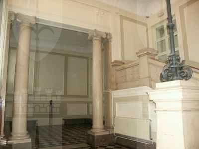 Basamento esterno di facciata trattato a finto bugnato di intonaco a livello del piano terra, con fascia marcapiano a livello del solaio del piano terra ed abbassamento in pietra bianca bulinata a livello delle finestre del piano seminterrato. Marcapiano quadro rifinito ad intonaco a livello del solaio del primo piano; più sottile a livello del solaio del secondo piano; coronamento con fregio decorativo a motivi geometrici e banchina sporgente modanata con gocciolatoio. Paraste di ordine gigante trattate ad intonaco scandiscono verticalmente i ritmi di facciata. Fori architettonici del piano terra con piattabanda a finto bugnato con chiave di volta in rilievo sulla facciata; al primo piano finestre riquadrate da edicole trattate ad intonaco con paraste laterali, doppio architrave, gocciolatoio modanato e davanzale in pietra bianca. Portali di ingresso a doppia anta tutti in legno massello con decorazioni geometriche delle parti tamponate, specchiature vetrate protette da inferriate decorate in ferro battuto e sopraluce a due specchiature; cornici in pietra bianca bulinata. Ingresso sulla Via della Bastia dotato di maggiore monumentalità, a mezzo di cornice modanata in pietra bianca di notevoli dimensioni; tettoia metallica di grandi dimensioni a protezione dell'ingresso, decorata da elementi di sostegno reticolari decorati da motivi geometrici. Sulla Via della Bastia, agli estremi della facciata, attici con piccole finestre quadrate; decorazione di facciata a lesene con capitello ionico, timpano modanato con dentelli ed acroteri. Facciate sul cortile interno più sobrie, trattate ad intonaco a tutta altezza; fascia marcapiano a livello del solaio del primo piano; coronamento decorato da fascia modanata in pietra bianca con piccole finestre rettangolari, che danno luce al sottotetto; cornici in pietra bianca in corrispondenza dei fori a tutti i livelli; architrave modanato in pietra bianca a livello del primo piano. Scale esterne in pietra bianca bulinata con parapetto in muratura, per l'accesso al piano terra dal cortile interno. Manto di copertura in coppi curvi rossi uso Trieste, gronde e pluviali in lamiera; pluviali interni alla muratura a livello del piano terra delle facciate rivolte verso strada. SCUOLA SLATAPER, CORRIDOIO NORD ED EST Serramenti esterni doppi; esternamente a doppia anta in alluminio verniciato bianco con vetrocamera e sopraluce vetrato; internamente permane il serramento originale ligneo a due ante ad otto specchiature, con sopraluce apribile a vasistas. Atrio di ingresso sulla Via della Bastia con pavimento in marmo a scacchiera bianca e nera, colonne con capitello corinzio in marmo lucido, soffitto a padiglione con decorazioni a stucco. Pareti con cornici a stucco e specchiature pitturate colore bianco. Monumento a Scipio Slataper sulla parete di fondo. Scala di accesso al piano terra rialzato con gradini in pietra bianca bulinata e parapetto in marmo decorato a motivi geometrici. Elementi a supporto dei corpi illuminanti in ferro verniciato colore nero. Corridoi interni pavimentati parzialmente a mezzo di battuto in graniglia e cemento, parzialmente a mezzo di piastrelline di ceramica bianca con decorazione nera. Pavimenti delle aule in parquet ligneo disposto a spina di pesce, con riquadri in marmo bianco in corrispondenza degli angoli dove un tempo erano posizionate le stufe a legna. Serramenti interni originali lignei di grandi dimensioni a più ante, con specchiature vetrate e sopraluce di grandi dimensioni in corrispondenza degli accessi ai corridoi; serramenti di porte in legno massello a riquadri rettangolari in corrispondenza delle aule. Vasche in marmo di Aurisina poste lungo i corridoi, utilizzate dai militari al tempo in cui l'edificio era adibito a caserma. Pareti trattate ad intonaco bianco con abbassamento in pittura ad olio. Scale di accesso ai piani con gradini in pietra bianca bulinata e parapetto con ringhiera in ferrro battuto decorato a motivi geometrici e corrimano ligneo curvato in corrispondenza dei pianerottoli. Al piano terra, piccolo teatro interno con sedute in legno massello con chiusura a bilico, disposte su platea a gradoni. SCUOLA TIMEUS, CORRIDOIO OVEST Atrio di ingresso con scala di accesso al piano terra rialzato in pietra bianca squadrata e lucidata di moderna fattura e corrimano in acciaio inox in corrispondenza del numero civico 56 di Via dell'Istria. Scala in pietra bianca bulinata di epoca storica con colonnine laterali in ghisa, in corrispondenza del numero civico 58 di Via dell'Istria. Serramenti di finestra in alluminio verniciato bianco con sopraluce, privi dell'anta interna in legno. Serramenti interni vetrati in alluminio laccato colorato in corrispondenza delle porte di comunicazione dei corridoi; porte metalliche antincendio verniciate a chiusura automatica in corrispondenza delle aule. Corridoi con pavimenti in linoleum e pareti rivestite in piastrelle colorate formato 15x15 fino ad altezza 180 cm. Aule con pavimenti in parquet disposto a spina di pesce; superfici verticali intonacate con abbassamento in pittura ad olio. Vano scala principale con gradini in pietra bianca bulinata, parapetto in ferro verniciato con decorazioni geometriche e corrimano in legno, curvo in corrispondenza dei pianerottoli; pavimentazione dei pianerottoli in lastre di pietra di Aurisina. Vano scala secondario con scala in pietra bianca squadrata e lucidata di moderna fattura, parapetto metallico di semplice fattura e corrimano ligneo.