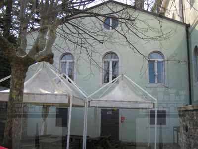 La scuola materna "Tor Cucherna" sorge sul colle di San Giusto, poco distante dall'omonimo castello. Si trova su un lotto frammentato da terrazzamenti che livellano le pendenze del terreno. L'edificio è composto da un fabbricato principale che ospita aule, servizi e cucine disposto su tre livelli e sottotetto. Vi è un secondo fabbricato su due livelli che ospita il locale impianti e la mensa. Le strutture verticali sono in muratura portante di pietra arenaria. Gli orizzontamenti sono in legno, con volte in pietra che reggono i pianerottoli della scala. La copertura è realizzata in calcestruzzo con manto in coppi curvi rossi. Le facciate presentano alla base la finitura a finto bugnato liscio; marcapiani in intonaco definiscono la restante superficie intonacata.