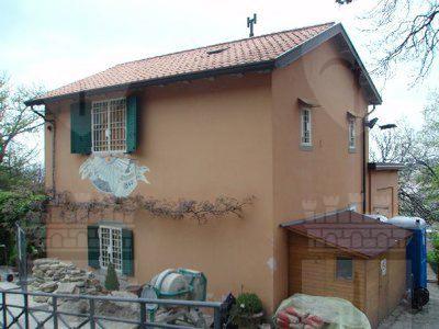 L'edificio principale a due piani presenta una finitura delle facciate ad intonaco di colore arancione chiaro, con prospetti compositivamente omogenei. Le aperture sono tamponate da serramenti ad anta di colore bianco, completati da oscuranti verniciati di verde, griglie metalliche bianche e da cornici lapidee. Alcuni fori sono caratterizzati da davanzali in pietra e tettucci intonacati della stessa tonalità dei fronti. L'ingresso è sottolineato da una bussola con copertura inclinata e serramenti metallici sagomati di colore verde; la struttura è collegata ad un pergolato ligneo, sempre tinteggiato di verde. Il tetto è a falde con manto di rivestimento in coppi e mensole lapidee in corrispondenza del livello sottogronda; un sistema di grondaie e pluviali in lamiera consente lo smaltimento delle acque meteoriche. La facciata parallela all'ingresso è decorata con una meridiana dipinta nel mezzo. La costruzione secondaria è realizzata in muratura a vista con mattoni rossi sovrapposti; la copertura è a falde con manto di rivestimento in coppi e grondaie in lamiera. I serramenti sono sempre di colore verde con oscuranti, mentre le portefinestre che consentono l'accesso sono dotate di un sopraluce vetrato. A fianco sorge un locale accessorio in legno, con struttura lignea costituita da assi sovrapposte e copertura inclinata; gli infissi sono lignei non tinteggiati. Le serre presentano dei fronti rifiniti ad intonaco di colore giallo scuro, mentre le ampie zone vetrate e le coperture inclinate sono state realizzate in metallo e vetro.