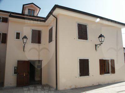 Il fabbricato si caratterizza sul lato fronte strada per il trattamento della facciata in pietra facciavista a tutta altezza. Sugli altri fronti i prospetti risultano invece semplicemente rivestiti a intonaco liscio color rosa chiaro. I fori architettonici sono tutti riquadrati da cornici in pietra bianca; i serramenti vetrati in legno verniciato naturale a doppia anta a due specchiature sono protetti da oscuranti esterni esterni a lamelle orizzontali fisse. Il portone di ingresso a due ante lignee, è delimitato da una cornice in pietra bianca, con architrave decorativo riportante la presunta data di edificazione. Lo sporto modanato della linda, realizzato in calcestruzzo armato facciavista, supporta il canale di gronda in lamiera verniciata color testa di moro. La copertura a falde discontinue presenta un manto in coppi curvi rossi uso Trieste. Internamente le finitura sono costituite da gres porcellanato al pavimento e intonaco bianco alle pareti. La scala di distribuzione ai piani superiori è semplicemente rivestita in guaina antiscivolo.