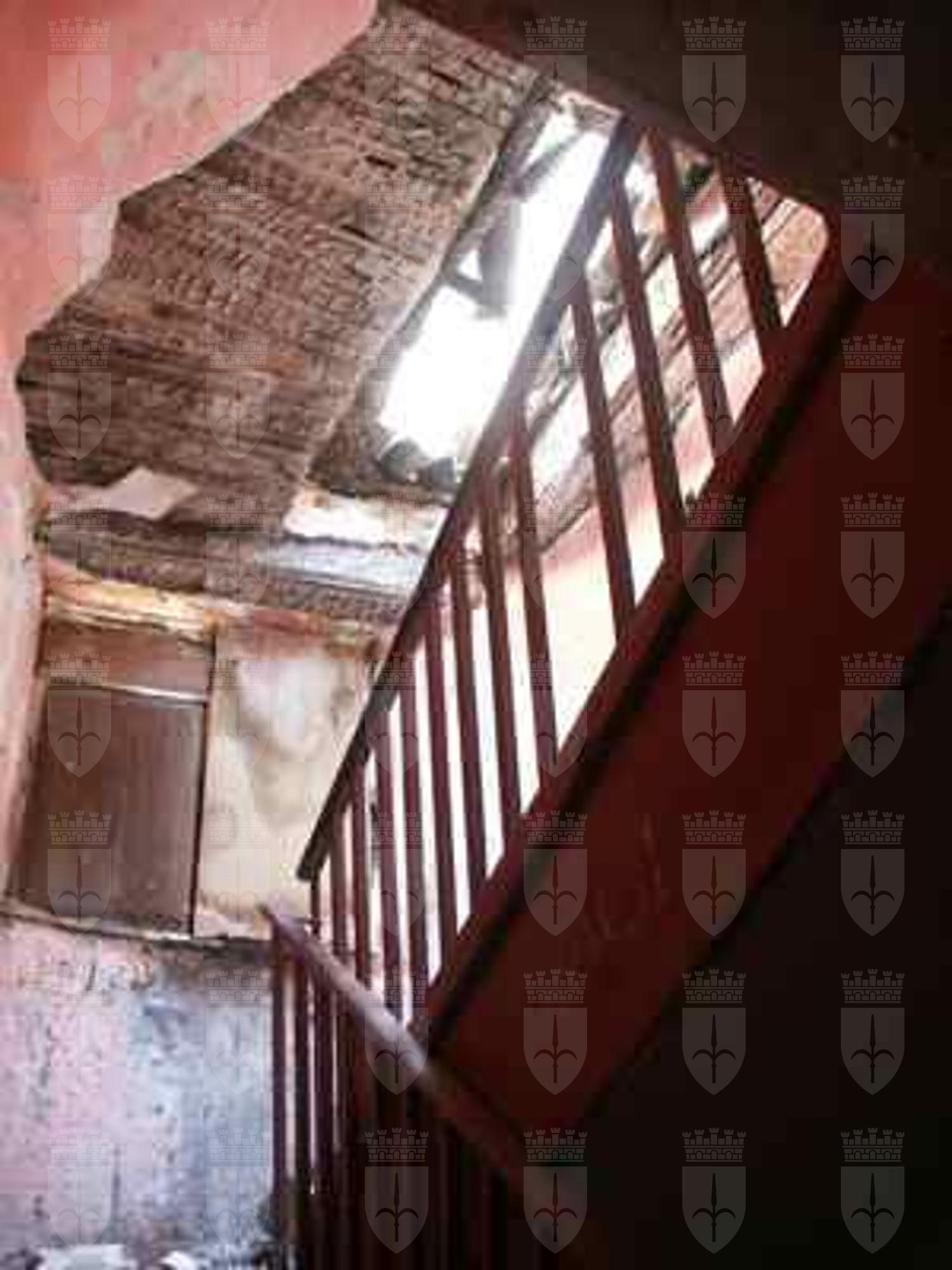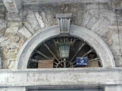 FACCIATA SU VIA BECCHERIE Basamento in pietra bianca bocciardata, rivestimento della fascia al piano terra in pietra bianca bulinata in corrispondenza del locale commerciale. Fori al piano terra con cornici arcuate in pietra bianca bulinata, decorate da chiavi di volta con volute in pietra. Architrave orizzontale sviluppato su tutta la lunghezza di facciata. Al centro un'iscrizione parzialmente leggibile (forse "MACELLERIA"). Sopraluce protetti da inferriate in ferro battuto. In corrispondenza del sopraluce del foro centrale, una lanternina in ferro battuto ed un'iscrizione recante la data 1851 (Pict0001.jpg). Banchina su mensole squadrate in pietra bianca a livello del primo orizzontamento, a protezione dell'ingresso al locale commerciale. Superficie di facciata trattata ad intonaco con marcapiano intonacato in corrispondenza del solaio del terzo piano. Serramenti oscuranti esterni in legno uso Trieste, montati su cornici in pietra bianca bulinata, con architrave a mensola al primo piano, architrave semplice ai piani superiori. Gronda e pluviale in lamiera. FACCIATA SU ANDRONA DEL PANE: Facciata trattata ad intonaco su tutta l'altezza. Fori architettonici con cornici semplici in pietra bianca bulinata. Porta di ingresso al piano terra in legno massello verniciato. Serramenti esterni dei piani superiori in legno senza oscuranti, ad otto specchiature con apertura a ghigliottina. INTERNO Scala con pianerottoli e gradini in lastre di pietra bianca bulinata e corrimano in ferro. Serramenti interni lignei e pavimenti in doghe di legno.