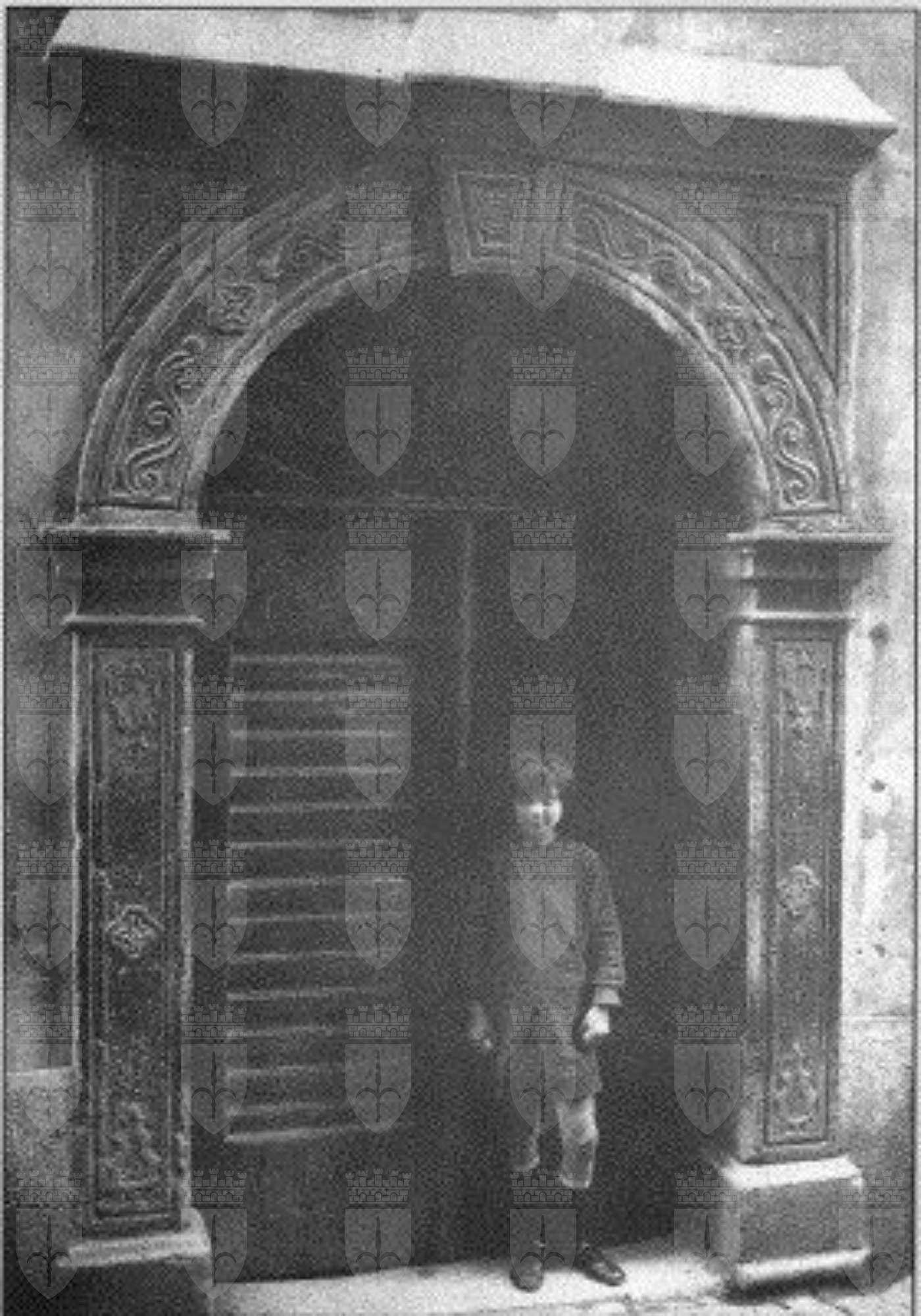 ELEMENTI ORNAMENTALI (esterno) Il portale ad arco presenta decorazioni a rilevo con motivi vegetali e floreali. In chiave d'arco è scolpita una rosellina. Sui pilastri che sostengono l'arco sono raffigurati motivi a scudo araldico e fiori.