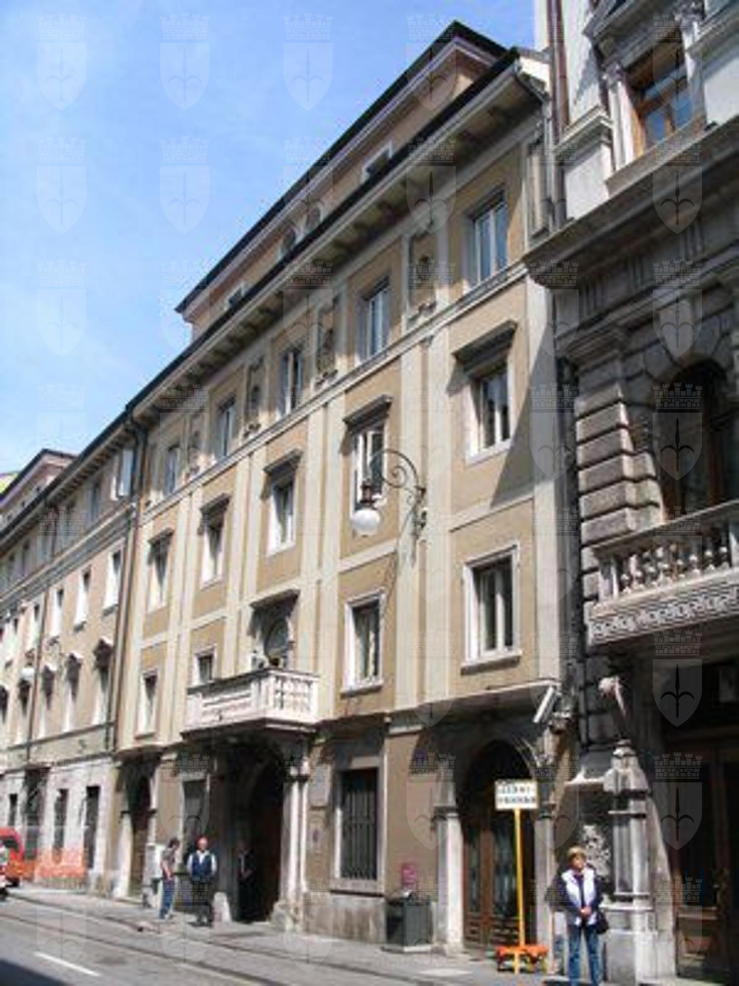 L'edificio, di cui non è noto l'autore, è stato costruito attorno al 1820-1830 per il negoziante genovese Agostino Samengo. Nel 1852 l'immobile fu sopraelevato su progetto dell'architetto Pietro Palese, mentre al 1931 risalgono le modifiche alla facciata del pianterreno. Negli anni Ottanta l'immobile è stato ristrutturato, dopo l'acquisizione da parte della Cassa di Risparmio di Trieste. Nella casa fu ospitato varie volte il violinista Nicolò Paganini. L'edificio è stato la prima sede della Lega Nazionale, come attestato dalla targa commemorativa posta accanto all'ingresso dello stabile nel 1991, anno del centenario della fondazione.
