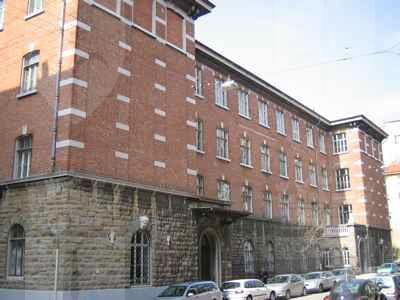 FABBRICATO PRINCIPALE Basamento in pietra bianca bulinata. Fascia superiore in bugnato a conci di pietra arenaria. Un marcapiano modanato in pietra bianca, che sovrasta un fregio continuo dentellato, segna la divisione dal resto della facciata. Essa è interamente rivestita in mattoni faccia a vista con alcuni elementi in pietra bianca a marcare le paraste. Elementi in pietra bianca inseriti anche tra gli archi ribassati dei fori dell'ultimo piano. Facciata su Via Ressel cieca. Parapetti delle due terrazze su Via Combi in pietra bianca. Banchina in pietra retta da coppie di reggimensole lavorate a volute, emergenti da un doppio fregio continuo dentellato. Bocche di lupo con inferriate nel basamento. Primi due livelli con fori arcuati a tutto sesto con serramenti in legno verniciato color bianco a nove o undici specchiature. Al primo livello due fori di dimensioni più ridotte a lato del portone sul cortile e nei volumi laterali: serramenti sempre lignei verniciati color bianco a cinque o tre specchiature. Al secondo livello di Via Combi doppi serramenti nel corpo centrale. Nel corpo laterale destro due bifore con serramenti in legno a tre specchiature. I restanti tre livelli hanno fori ad arco ribassato con davanzale e chiave di volte in pietra bianca; doppi serramenti in legno verniciato color bianco a undici specchiature. Nei corpi laterali che si affacciano sul cortile trifore e quadriforme con serramenti in legno a tre specchiature. Nel corpo laterale sinistro fori arcuati a tutto sesto o ad arco ribassato con serramenti lignei a tre specchiature. Portoni d'ingresso lignei a due battenti ciascuno e sopraluce. I fori arcuati sono tutti con cornice in pietra bianca modanata e pensilina sovrastante in legno che poggia su due reggimensole a volute in pietra bianca (IMG_1019). Gronda e pluviali esterni in lamiera. Doppio accesso su Via Combi. Corridoi pavimentati alla veneziana; aule con pavimenti in listelli di legno oppure con linoleum e controsoffitti in doghe d'alluminio. Corridoi occasionalmente inframmezzati da pareti lignee (IMG_1049). Scale nei corpi laterali. Sono di tipo appoggiato con trave d'acciaio di sostegno. Gradini in pietra bianca bulinata. Parapetto in ferro verniciato color bianco con passamano in legno (IMG_1046). RICREATORIO Basamento in pietra bianca bulinata. Fascia superiore in bugnato a conci di pietra arenaria. Rimanente parte di facciata rivestita in mattoni faccia a vista con conci di pietra arenaria a marcare gli spigoli del fabbricato. Scala laterale di accesso diretto al primo livello in pietra bianca bulinata con parapetto interamente in ferro. Facciata su Via Ressel cieca con solo sei piccoli fori rettangolari di recente fattura con serramenti in alluminio a unica specchiatura. Primo livello con fori arcuati a tutto sesto con serramenti in ferro verniciato color verde e sopraluce; inoltre fori rettangolari con serramenti in legno verniciato color verde a due specchiature con inferriate verniciate color verde. Una porta in ferro permette l'accesso al primo livello. Fori arcuati a tutto sesto nella struttura della scala con serramenti in legno a quattro specchiature o tamponati da assi di legno. Nel raccordo di collegamento con l'edificio principale fori rettangolari tamponati da tavolati dipinti. Secondo livello con fori arcuati a tutto sesto con davanzale in pietra bianca. Doppi serramenti in legno color bianco a quattro specchiature e sopraluce, la maggior parte dei quali provvista di oscuranti in legno verniciati color verde. Scala interna rivestita di linoleum antiscivolo con parapetto in ferro color verde. Corridoi, stanze e aule gioco pavimentate con quadrettoni di linoleum; controsoffitti costituiti da pannelli di fibre minerali. Palestra del livello inferiore con superficie in parquet.