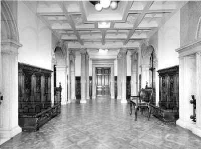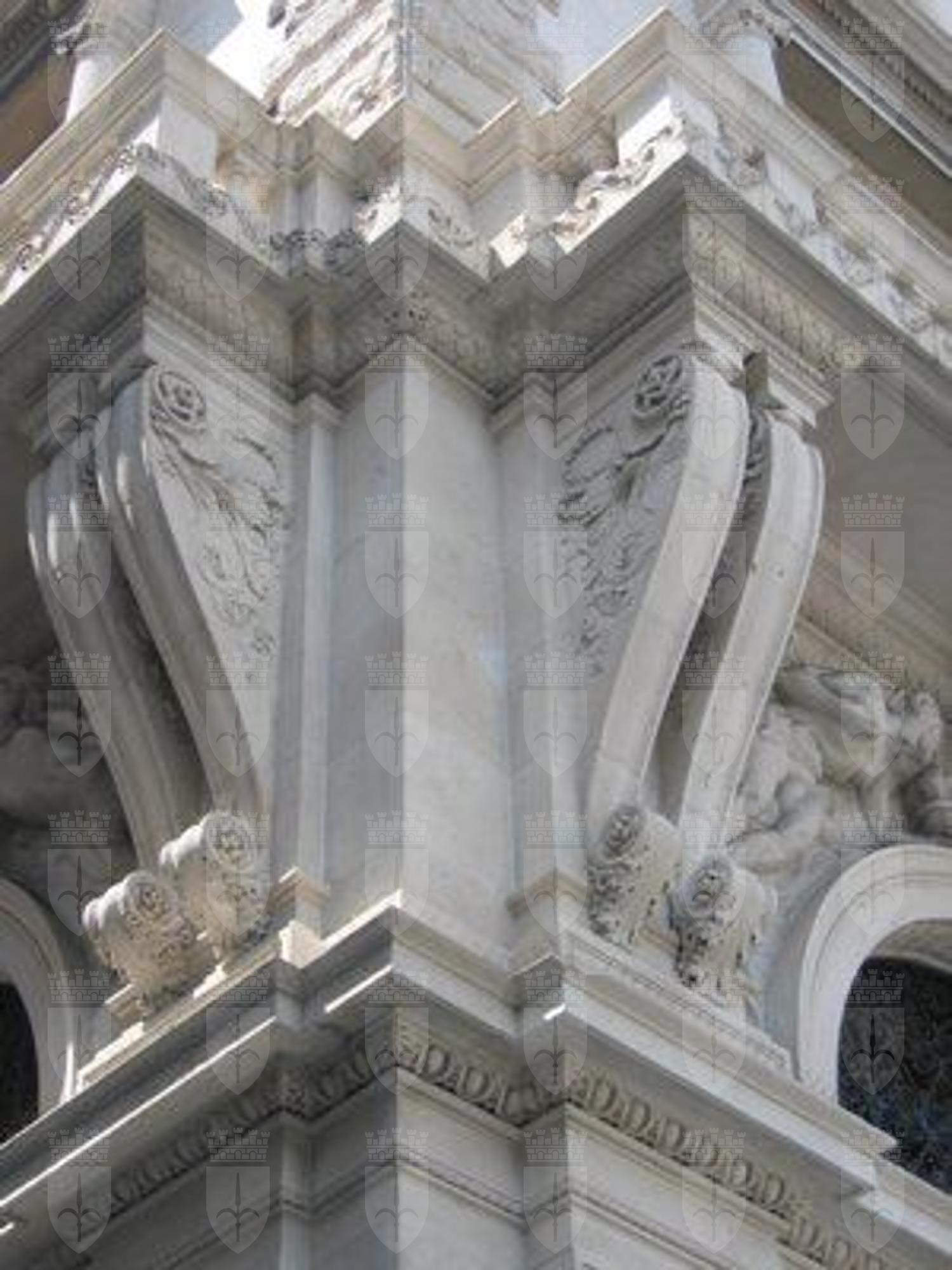 ELEMENTI ORNAMENTALI (esterno): Elementi decorativi a motivi floreali in pietra a rilievo in corrispondenza delle specchiature tra i fori architettonici all'ultimo piano e dello sporto di linda. ELEMENTI ORNAMENTALI (esterno): Chiave di volta a decorazione degli archi a tutto sesto, raffigurante volto di uomo scolpito in pietra. MENSOLE (esterno): Mensole a voluta in pietra a sostegno dei balconi e dello sporto di linda. BALAUSTRE (esterno): Parapetto dei balconi in pietra con balaustrini ad anfora. STATUE (esterno): Statue poste in corrispondenza dell'ammezzato nelle lunette della facciata principale raffiguranti le personificazioni di Fuoco e Aria, Pensiero e Azione, Acqua e Terra, eseguite dallo scultore Giovanni Mayer. STATUE (esterno): Statue poste in corrispondenza del secondo piano della facciata principale raffiguranti le personificazioni della Previdenza e della Protezione, eseguite dallo scultore Gianni Marin.