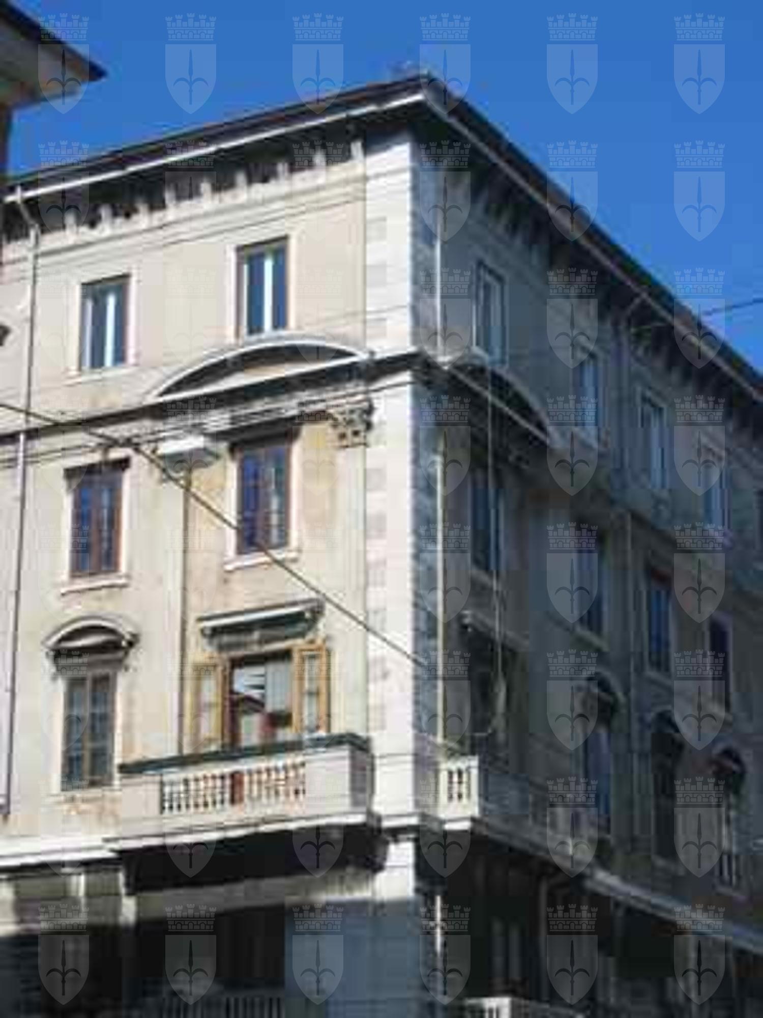 BALCONE (esterno): Balcone con parapetto a balaustre in pietra al primo e secondo piano della facciata su Via Trento. LESENE (esterno): Lesene di ordine gigante con capitello corinzio al secondo e terzo piano della facciata su Via Trento.