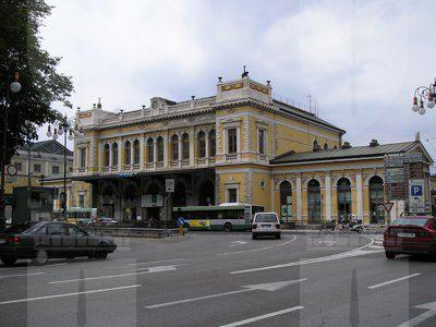 Nel 1850 vennero avviati i lavori di costruzione della prima stazione ferroviaria di Trieste; la prima linea aperta in città permetteva il collegamento con Vienna, al quale si aggiunse nel 1857 la linea Trieste Lubiana. Per la costruzione della prima stazione, che si trovava un centinaio di metri arretrata rispetto alla struttura attuale, fu scavata parte della collina di Scorcola e vennero demoliti diversi edifici. Poco tempo dopo si rivelò la necessità di ingrandire la stazione e di costruire un nuovo edificio per accogliere i passeggeri. Nel 1869 il Lazzaretto S. Teresa fu demolito e nel 1873 si iniziarono i lavori per l'ampliamento della stazione. La nuova stazione, costruita su progetto dell'architetto Wilhelm Flattich di Stoccarda, fu inaugurata il 19 giugno 1878 e completata nel 1888. Il complesso della stazione era costituito anche da altri due edifici; la cosiddetta "Casa del ferroviere" e la rimessa semicircolare, demoliti negli anni Settanta. Diverse modifiche interessarono la struttura nel corso del XX secolo, tra la creazione di nuovi locali per ospitare servizi e uffici. Attualmente parte dell'edificio è in restauro.