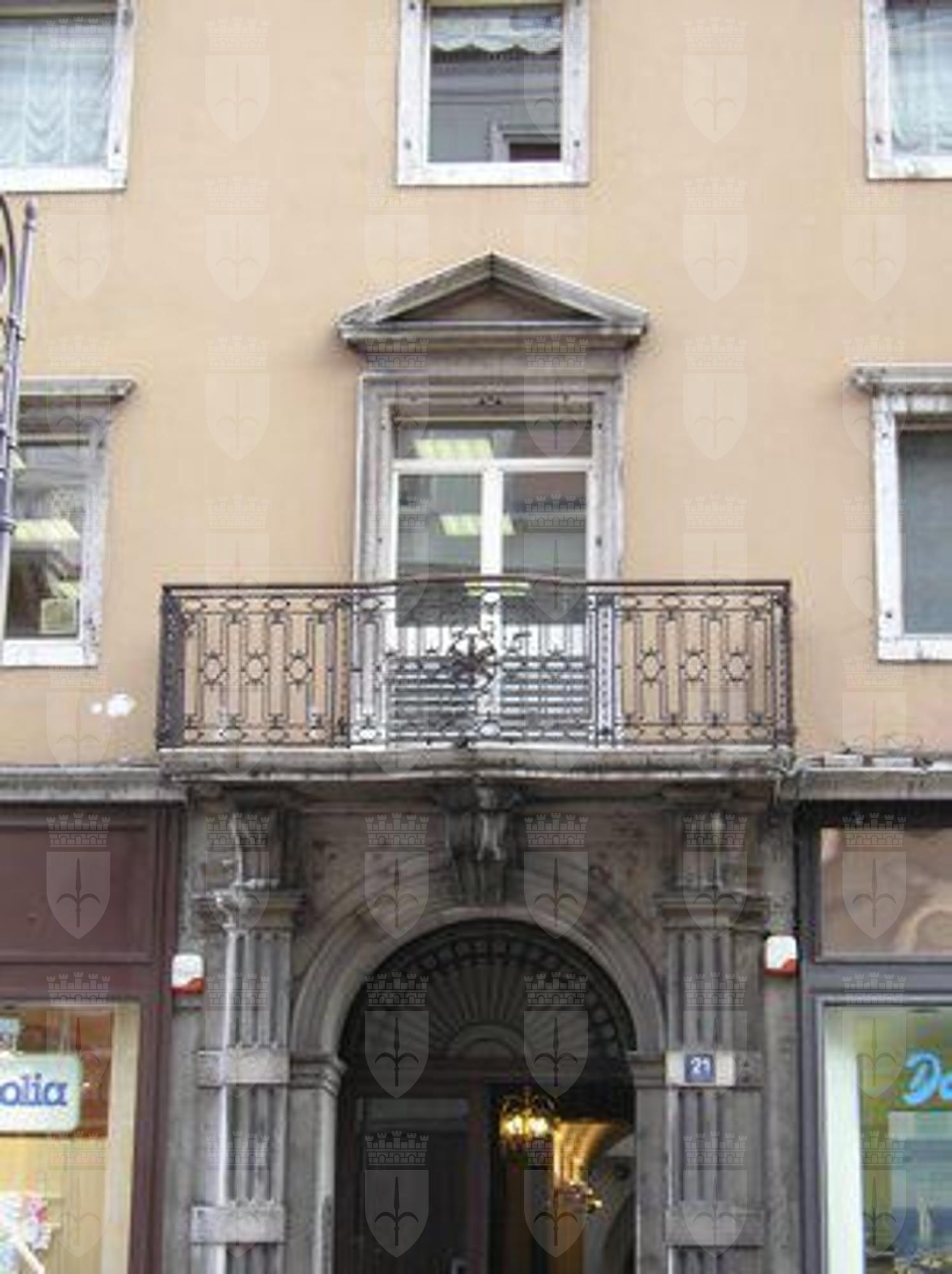 Il palazzo è stato costruito nel 1800 su progetto dell'architetto Sebastiano Zanon. Nel 1882 su progetto di Giovanni Berlam venne alterata parte della struttura interna e nel 1927 furono apportate delle modifiche al pianoterra. Il vincolo è limitato alla facciata. La struttura ospita al pianoterra attività commerciali e ai piani superiori unità abitative.