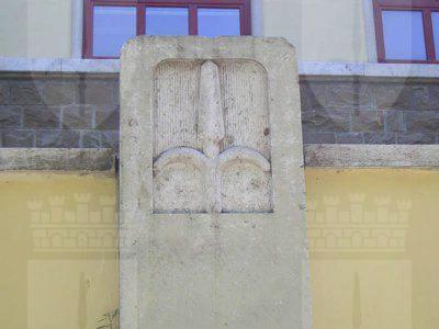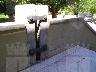 STELE (esterno): pilastro in pietra massiccia, inserito nel parapetto della scala e decorato con un'alabarda scolpita; sul retro è previsto l'alloggiamento dell'asta di una bandiera con due staffe in metallo (P1010030.JPG). OROLOGIO (esterno): orologio posizionato sul timpano in muratura del prospetto principale. MARCAPIANO (esterno): marcapiano in pietra artificiale, a profilo rettangolare, disposto sul limite superiore del rivestimento del piano interrato. CORNICE (esterno): cornice del tetto, a profilo rettangolare con gocciolatoio, in pietra artificiale.