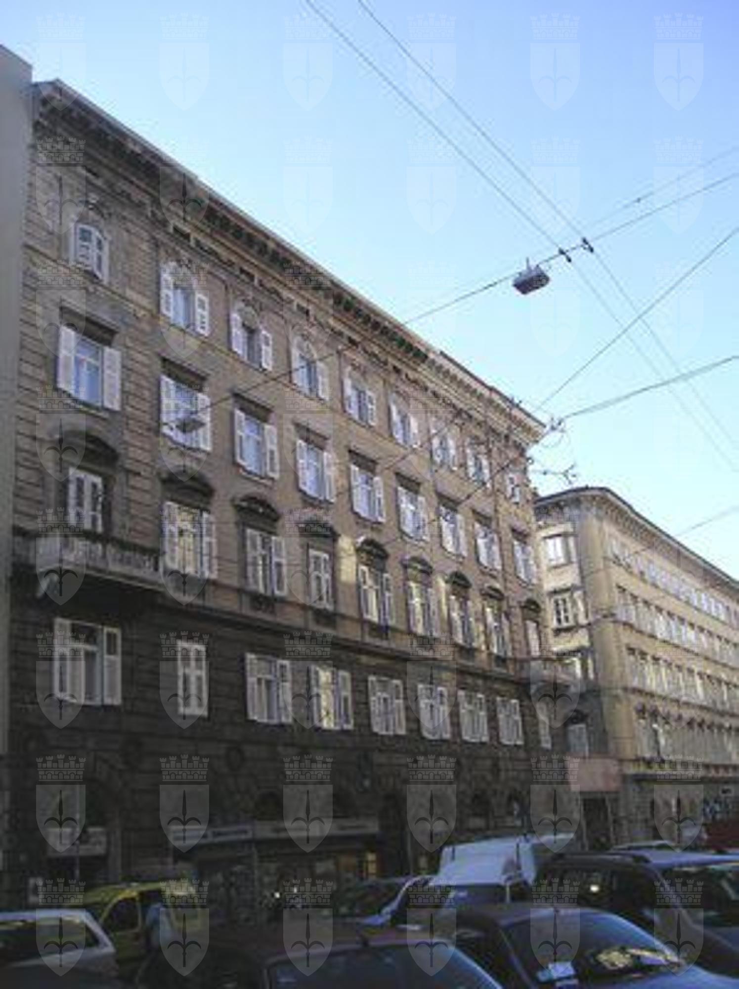 L'area sulla quale sorge l'immobile è stata edificata a partire dal 1796, anno in cui l'imperatore Francesco I fece tracciare la strada e promosse l'edificazione di quella parte della città, chiamata in suo onore Borgo Franceschino. Il toponimo Coroneo deriva da Chron, cognome del vescovo di Lubiana proprietario di tutti i terreni in quella zona sin dal 1611. In seguito egli li cedette ai Gesuiti che ne restarono in possesso fino alla soppressione dell'ordine. L'edificio in questione è stato costruito nel 1902 su progetto dell'architetto Augusto Bachschmidt. Nel provvedimento di vincolo redatto dalla Soprintendenza la costruzione viene descritta come: "imponente ed elegante edificio dalla veste architettonica tardo neoclassica, che si ispira alle forme dei modelli di tradizione rinascimentale romana". Il vincolo è limitato alla facciata principale ed a quella che prospetta l'edificio di via del Coroneo n.1.