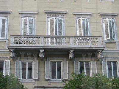 BALCONE (esterno): Balcone a balaustra in pietra sorretto da quattro mensole rappresentanti animali fantastici in corrispondenza della parte centrale del prospetto principale. POGGIOLO (esterno): Coppia di poggioli con parapetti n ferro battuto decorati da motivi floreali in corrispondenza edlle estremità del secondo piano del prospetto principale. FREGIO (esterno): Fregio a rilievo in pietra raffigurante motivi floreali a coronamento della superficie muraria del prospetto principale.