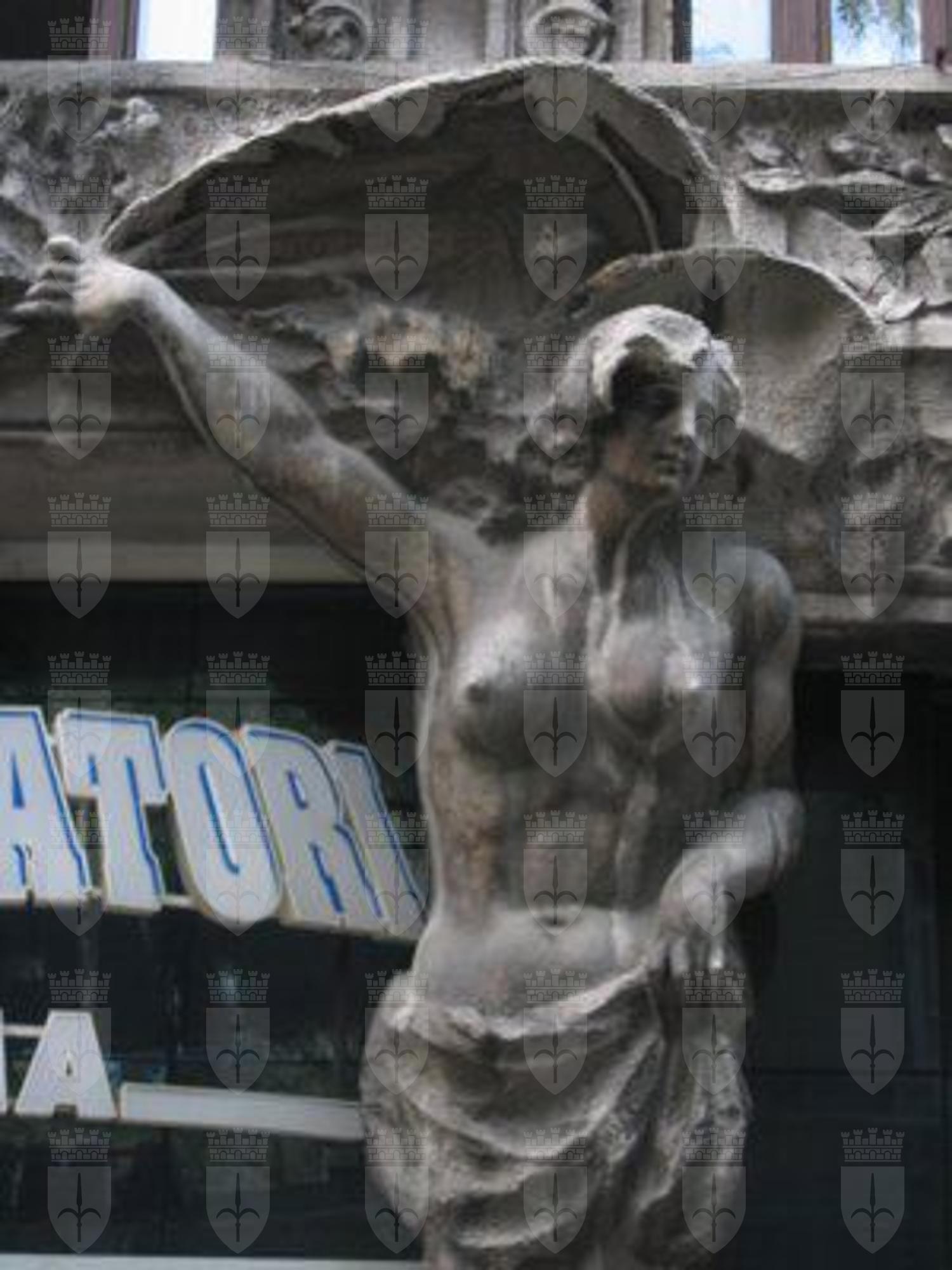 STATUE (esterno): Coppia di statue in pietra raffiguranti immagini di donna a cui corrispondono al di sopra due putti dello stesso materiale, attribuiti agli artisti Romeo Rathmann e Romeo de Paoli, colocati in corrispondenza dell'ingresso principale su Via Venti Settembre. FREGI( esterno): Fregi a rilievo a decorazione delle aperture, cornici e specchiature delle finestre con motivi floreali e vegetali su tutti e tre i lati dell'edificio. COLONNE (esterno): Colonnine con capitello con decorazioni a rilievo a motivi floreali i corrispondenza di alcune finestre del quinto piano su tutti e tre i lati dell'edificio.