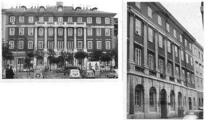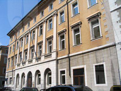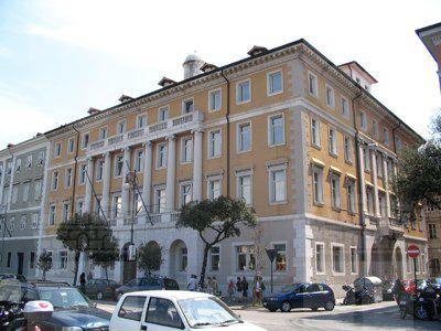 L'edificio, in stile neoclassico, è composto da pianoterra e tre piani superiori. Il prospetto principale, che si affaccia sulle rive, è caratterizzato da un corpo centrale in aggetto con una serie di arcate in bugnato liscio che sorreggono una balaustra in pietra, sulla quale si impostano sei semicolonne ioniche, comprendenti primo e secondo piano. Al di sopra del colonnato si imposta una balconata a colonnine in pietra. Le altre due facciate dell'edificio ripetono il motivo dell'ordine gigante del prospetto su riva Nazario Sauro, ma le semicolonne sono sostituite da lesene ioniche. La facciata su via dell'Annunziata è contraddistinta da un balcone centrale. Tutte le finestre del piano nobile sono architravate. Una cornice a dentelli conclude le facciate sotto lo sporto di linda, sostenuto da mensoline. Sul tetto, in posizione centrale rispetto alla facciata principale, si erge una torretta con cupola.