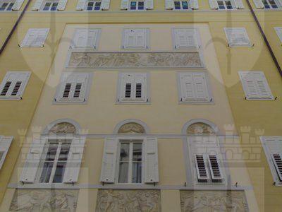 BALCONE (esterno): Balcone con parapetto in ferro battuto sul prospetto di Riva Nazario Sauro. FREGIO (esterno): Fregio a bassorilievo raffigurante scene mitologiche sul prospetto di Riva Nazario Sauro. RILIEVI (esterno): Tre rilievi rappresentanti la lotta dei Centauri e Lapiti sul prospetto di Riva Nazario Sauro. FREGIO (esterno): Fregio a bassorilievo raffigurante personaggi maschili e femminili in costumi classici sul prospetto di Via Luigi Cadorna. RILIEVI (esterno): Tre rilievi rappresentanti allegorie della vita mercantile sul prospetto di Via Luigi Cadorna. LUNETTE (esterno): Lunette con rilievi rappresentati trofei sul prospetto di Via Luigi Cadorna.