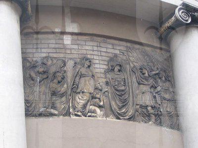 COLONNE (esterno) Colonne di ordine gigante con capitello ionico. STATUE (esterno) Alle estremità del colonnato sono collocate due statue raffiguranti Marte e Minerva, realizzate nella bottega veneziana di Antonio Bosa. FREGI (esterno) I fregi scolpiti a bassorilievo raffigurano eventi eroici della Roma repubblicana, in particolare una vicenda legata a Coriolano, Virginia uccisa dal padre e il sacrificio di Ifigenia. BALAUSTRE (esterno) Il parapetto del colonnato è caratterizzato da balaustrini da anfora in pietra. AFFRESCHI (interno) Decorazioni ad affresco sono presenti nella sala circolare e nella cosiddetta "saletta pompeiana". Rappresentano temi desunti dall'iconografia classica, come ad esempio la favola di Amore e Psiche, e affreschi di stile pompeiano.