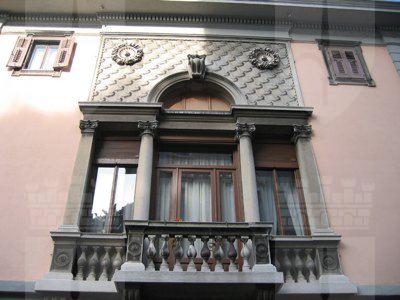 SERLIANA (esterno): Struttura a serliana costituita da balaustra in pietra aggettante nella parte centrale, caratterizzata da colonne libere ed ai lati semipilastri con capitello ionico. La chiave di volta dell'arco a tutto centro è arricchita da una mensola a voluta. La specchiatura superiore in pietra presenta una decorazione a motivi geometrici con parti in rilievo raffiguranti elementi floreali e due ghirlande simmetriche rispetto l'arco centrale. BALAUSTRA (esterno): Parapetto in pietra a balaustra in corrispondenza della terrazza superiore. VERANDA (esterno): Veranda con struttura di sostegno in pietra caratterizzata da pilastri con capitello ionico, copertura lignea in corrispondenza della terrazza del secondo livello della facciata posteriore. TORRETTA (esterno): Torretta circolare su cui si aprono due solo finestre e terminante con struttura a colonne libere di ordine ionico e copertura lignea. CANCELLO (esterno): Cancello in ferro battuto decorato da motivi geometrici e floreali.