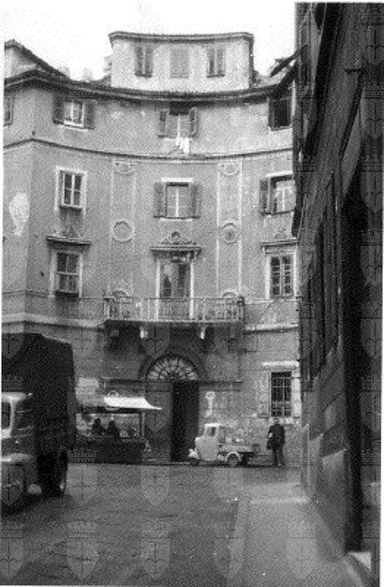 Nel 1833 fu predisposto il piano di lottizzazione e urbanizzazione dell'area di Piazza della Valle. Il nuovo assetto prevedeva una piazza circolare in cui confluivano tre assi viarie cittadine. Nel 1835 fu realizzato questo edificio su progetto di Giovanni Degasperi. Già di proprietà di Giovanni Denicol, l'immobile caratterizzato dalla particolare soluzione della facciata concava fu preso ad esempio dagli edifici contermini realizzati da Francesco Bruyn e Giovanni Berlam. Negli anni l'edificio ha subito diverse modifiche, tra cui un intervento di sopraelevazione nel 1869 e un intervento sulle finestre del pianterreno e del primo piano nel 1951. Nel 1986 è stato approvato il piano di recupero di Piazza della Valle, che segue quelli relativi alle aree di via dei Capitelli e via della Pescheria. Sul decreto di vincolo della Soprintendenza è riportata la seguente motivazione: "trattasi di edificio curvilineo, semplice nelle sue linee, interessante il poggiolo del primo piano e le due lesene. E' soprattutto importante per la conservazione della particolare caratteristica di ambiente alla Piazza della Valle."