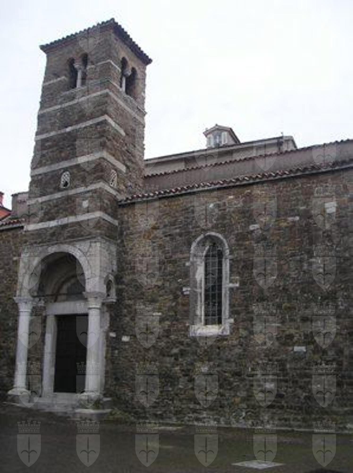 LAPIDE (esterno) Lapide posta dai Gesuiti nel 1672 recitante " TERGESTVM SS. EVPHEMIAE ET THECLAE NOBIL, VV. ET MM. TERGESTIN. DOMICILIVM PRIMVM TEMPLVM ET CATHEDRALE IMMACVLATAE VIRG. ORATORIVM RESTAVRATVM M.D.C.L.XXII." AFFRESCO (interno) Frammenti di pitture ad affresco trecentesche raffiguranti una scena relativa alla vita dell'imperatore Costantino e una probabile Annunciazione. ROSONE (esterno) Rosone con raggiera ad archi a tutto sesto sulla facciata principale. COLONNE (interno) Colonne in pietra con capitello cubico suddividono le navate interne. PROTIRO (esterno) Protiro romanico in pietra bianca con colonne a sostegno dell'arco a tutto sesto.
