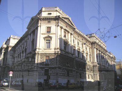 La struttura presenta una planimetria trapezoidale con corte interna e affaccio principale sul Foro Ulpiano, secondari su Via del Coroneo, Via della Fontana e Via Fabio Severo. Le facciate sono costituite da un alto basamento a robusto bugnato in pietra del Carso proveniente da una cava di Aurisina. Il basamento, solcato da due ordini di finestre, si conclude con una robusta cornice marcapiano in pietra. Sopra il basamento, i due piani superiori sono scanditi da semicolonne e paraste di ordine ionico in pietra proveniente dalle cave di Pola. Le facciata principale e quella laterale prospettante Via del Coroneo presentano un corpo centrale sporgente e sopraelevato, caratterizzato da un colonnato di ordine gigante ionico impostato su una balaustra. Le finestre del piano nobile sono sormontate da timpano, quelle in corrispondenza del colonnato della facciata sul Foro Ulpiano sono coronate da timpano spezzato su cui si innestano le aperture ovali del piano superiore. Le facciate terminano con una cornice marcapiano in pietra di Pola sostenuta da mensoline e timpani agli angoli. Le parti sopraelevate presentano aperture di forma ellittica nel sottotetto e sono sormontate da balaustre sul tetto. Sull'attico del corpo centrale aggettante sono collocate sei grandi statue di giuristi romani.