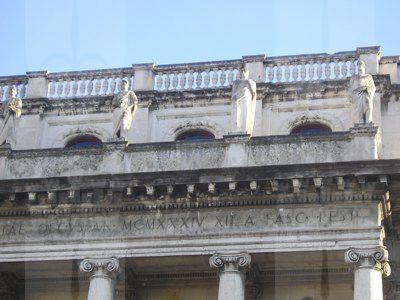 ISCRIZIONE (esterno) Sulla trabeazione del colonnato è incisa l'iscrizione latina "SEDES IVSTITIAE VRBIS LIBERTATE DECUS AN. MCMXXXIV XII A FASC. REST." COLONNE (esterno) Colonne e semicolonne di ordine gigante con capitello ionico PARASTE (esterno) Paraste lisce di ordine gigante con capitello ionico STATUE (esterno) Sei statue in pietra dell'altezza di oltre 3 metri raffiguranti: Emilio Papiniano, Triboniano e Domizio Ulpiano, realizzate da Marcello Mascherini. Le statue di Salvio Giuliano, Gaio e Paolo Giulio Aulo sono state scolpite da Franco Asco. BALAUSTRE (esterno) Balaustre con balaustrini in pietra a livello del piano nobile sui corpi centrali delle facciate e sul tetto in corrispondenza dei corpi centrali e agli angoli.