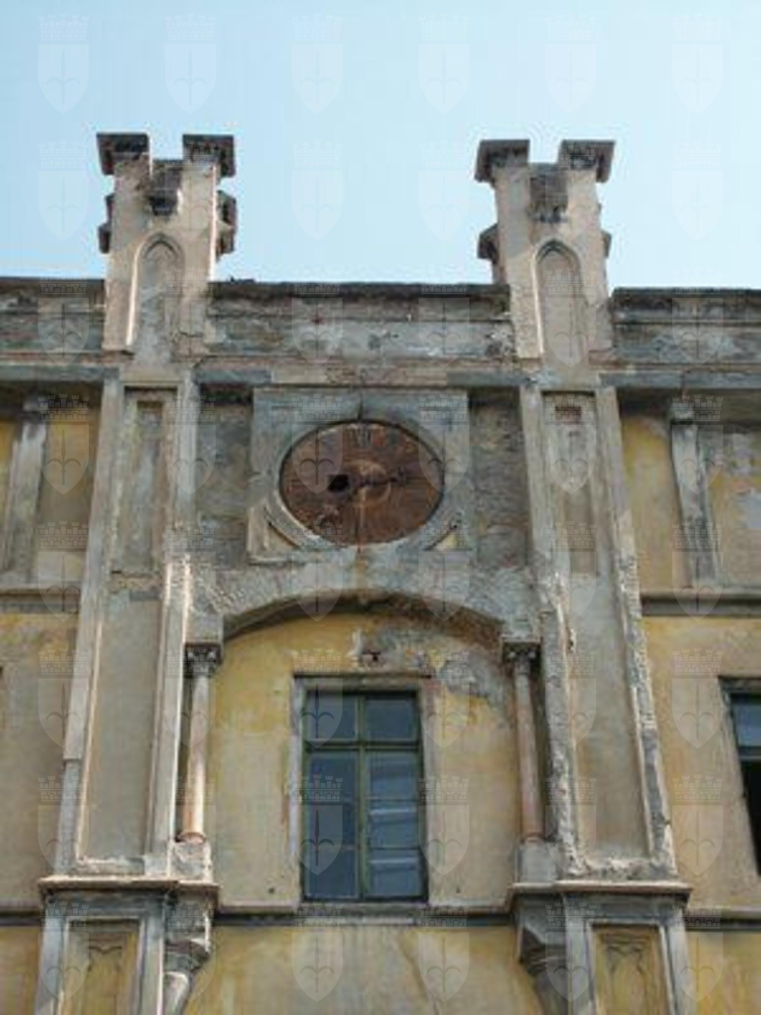 ELEMENTI ORNAMENTALI (esterno) Medaglioni lobati e merlature in stile gotico quadrato ornano le facciate. LESENE (esterno) Lesene bordate da listelli e coronate da trabeazioni. BALCONE (esterno) Balcone con balaustra traforata in pietra con motivi a quadrifoglio.
