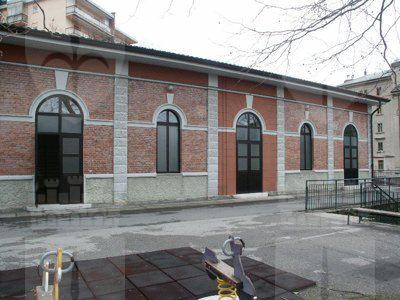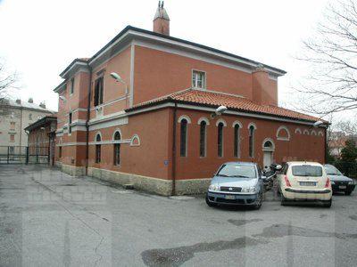CORPO EDILIZIO PRINCIPALE Un abbassamento in intonaco grezzo protegge l'intonaco liscio di facciata dipinto in color rosso porpora. La facciata principale presenta al piano terra un finto bugnato liscio; paraste lisce rifinite ad intonaco suddividono la facciata in tre parti, mettendo in evidenza la porzione centrale, sovrastata dall'attico; un imponente marcapiano modanato rifinito ad intonaco mette in risalto la ripartizione orizzontale alla quota del solaio del primo piano; il coronamento modanato rifinito ad intonaco si collega senza soluzioni di continuità alla banchina; le lattonerie sono in lamiera verniciata color testa di moro e il manto di copertura si presenta in coppi curvi rossi uso Trieste. I fori architettonici del piano terra, disposti simmetricamente sulla facciata e tutti arcuati, sono collegati a livello dell'architrave da una modanatura ad intonaco posta a correre sulla lunghezza dell'intera facciata; i serramenti vetrati in PVC bianco presentano degli oscuranti metallici esterni verniciati color testa di moro e un sopraluce vetrato protetto da un'inferriata in ferro battuto decorato; la porta lignea a doppia anta di ingresso principale, presenta anch'essa un sopraluce e due specchiature vetrate, protette da inferriate in ferro battuto. I fori architettonici al primo piano, di forma rettangolare e di dimensioni costanti, sono messi in risalto da edicole in pietra bianca con architrave modanato, gocciolatoio sorretto da piccole mensole a voluta e specchiatura trattata ad intonaco bianco posta al di sotto della linea del davanzale, a sua volta messa in evidenza da una modanatura in intonaco posta a correre lungo l'intera dimensione della facciata; i serramenti in PVC a due ante a quattro specchiature con finta inglesina presentano oscuranti esterni ad anta in PVC color testa di moro, ad imitazione degli oscuranti uso Trieste; un balcone in pietra sorretto da quattro mensole decorate a voluta copre la larghezza dei tre fori architettonici centrali e presenta una balaustra in ferro battuto decorato; il foro centrale di porta-finestra di accesso al balcone è messo in evidenza da un timpano triangolare modanato. L'attico presenta tre fori finestra protetti da oscuranti esterni in PVC color testa di moro. I prospetti secondari sono trattati in maniera omogenea ma meno ricca di quello principale, con fori architettonici di dimensioni minori, soprattutto in corrispondenza dei servizi. La pavimentazione in battuto di graniglia e cemento copre tutte le superfici di calpestio del piano terra, mentre al primo piano gli spazi comuni sono pavimentati in marmette di graniglia cemento e le aule presentano un parquet ligneo disposto a spina di pesce. La scala con gradini in pietra bianca bulinata è protetta da una balaustra in ferro battuto decorato con corrimano ligneo. I paramenti murari intonacati color bianco mostrano un abbassamento in smalto murale in color rosa antico, mentre i soffitti nascondono le travature lignee a mezzo del tipico intonaco aggrappato su arelle lignee fissate alla struttura. I serramenti interni sono lignei di grandi dimensioni a doppia anta verniciata in color panna, a tre specchiature cieche. CORPO EDILIZIO SECONDARIO Le facciate sono trattate in maniera omogenea sui quattro lati, ad esclusione del maggior numero di fori presenti sull'affaccio nord-ovest, dove ampie porte-finestre archivoltate si alternano a più piccole finestre. Tutti i fori presentano una cornice ad arco ad intonaco modanata con chiave di volta liscia rifinita ad intonaco. Il paramento murario, le cui dimensioni sono scandite a ritmi regolari da paraste in finti conci ad intonaco grezzo, posti in corrispondenza delle strutture verticali in calcestruzzo armato, presentano un tamponamento esterno in laterizio facciavista e un basamento in intonaco grezzo che protegge il paramento murario dagli agenti atmosferici. La banchina trattata ad intonaco supporta lattonerie in lamiera verniciata color testa di moro. Il manto della copertura a falde è composto da coppi curvi rossi uso Trieste.