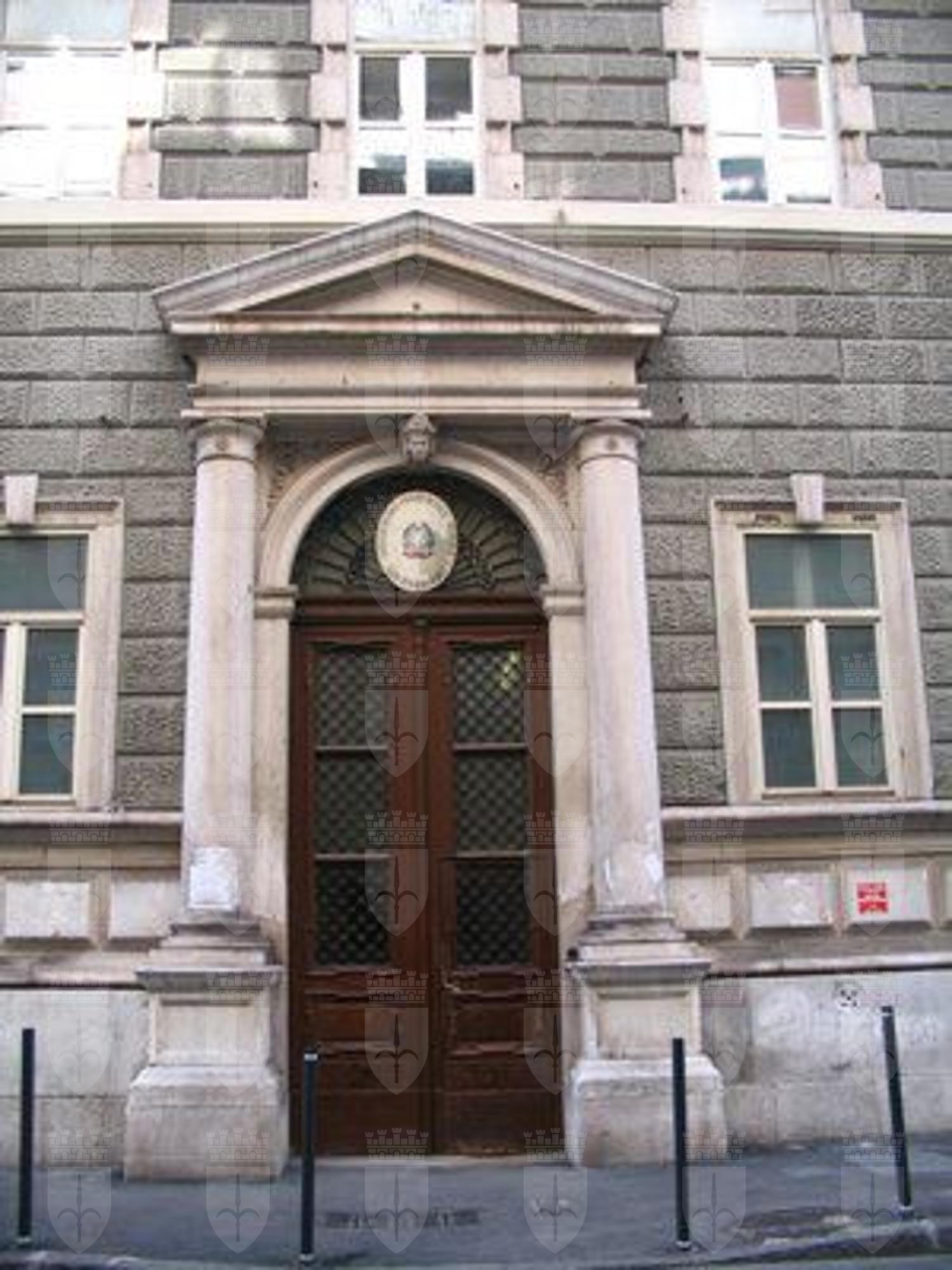 ELEMENTI ORNAMENTALI (esterno) Decorazioni a motivo floreali a rilievo ornano le lunette dei portali e le specchiature interposte alle finestre dell'attico. MASCHERONI (esterno) Panduri raffiguranti volti umani sono collocati in chiave d'arco dei portali d'ingresso. COLONNE (esterno) Colonne addossate di ordine tuscanico sostengono la trabeazione dei portali d'ingresso in Piazza Hortis e via Diaz. SEMIPILASTRI (esterno) Semipilastri di ordine tuscanico sorreggono la trabeazione dei portale in via dell'Annunziata e Via San Giorgio.