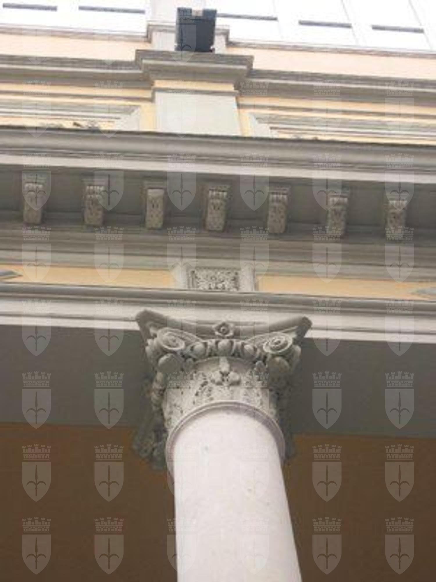 FREGI (esterno): Fregi a rilievo con decorazioni a motivi vegetali e geometrici in corrispondenza delle lunette e architrave delle finestre e della trabeazione del secondo e terzo livello fuori terra. LESENE (esterno): Lesene con capitello ionico e decorazioni a rilevo con motivi floreali in corrispondenza del secondo e terzo piano fuori terra. GHIRLANDE (esterno): Ghirlande a rilievo nelle specchiature inferiori alla veranda del terzo piano del prospetto su Via Enea Silvio Piccolomini. COLONNE (esterno): Colonne di rodine gigante su alto basamento con capitello ionico in corrispondenza dell'ingresso sul prospetto di Via Enea Silvio Piccolomini. STATUE (esterno): Coppia di statue in terracotta raffiguranti figure femminili in corrispondenza delle nicchie laterali alla veranda al terzo piano del prospetto di Via Enea Silvio Piccolomini.