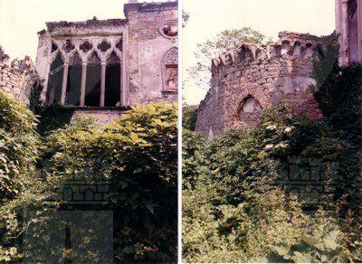 Il complesso in origine era costituito dalla villa, dalle scuderie e da quattro edifici rurali limitati da alte e massicce mura di cinta. La villa, realizzata in stile gotico tardo, poggia su bastioni del Cinquecento in origine merlati. La facciata principale, ripartita in tre zone da lesene, è ornata da finestre gotiche e ad occhio, rosoni in pietra arenaria, quadrifore ad imitazione del gotico fiorito veneziano e pinnacoli squadrati sopra al cornicione. La parte centrale della facciata presenta al piano terra un portale archiacuto, e al primo piano un poggiolo. Al centro del secondo piano c'è una finestra ogivale sormontata da una ghimberga che si eleva sopra al cornicione. Il tetto è crollato in buona parte della costruzione. Nella parte posteriore della costruzione si eleva una torretta belvedere. Il complesso è completato da muraglioni di contenimento a forma di bastioni medievali. All'interno sono distribuite quattordici stanze. Al pianterreno vi è un salone con caratteristico focolare, mentre nella sala con le quadriforme al primo piano si trova un caminetto. I pavimenti di alcune stanze sono realizzati con mattonelle di ceramica dipinte a mano, altri in rustico o mosaico. Sulle pareti rimangono tracce di decorazioni ad affresco e di fregi ornamentali in stucco. Le finestre avevano vetri policromi e piombati.