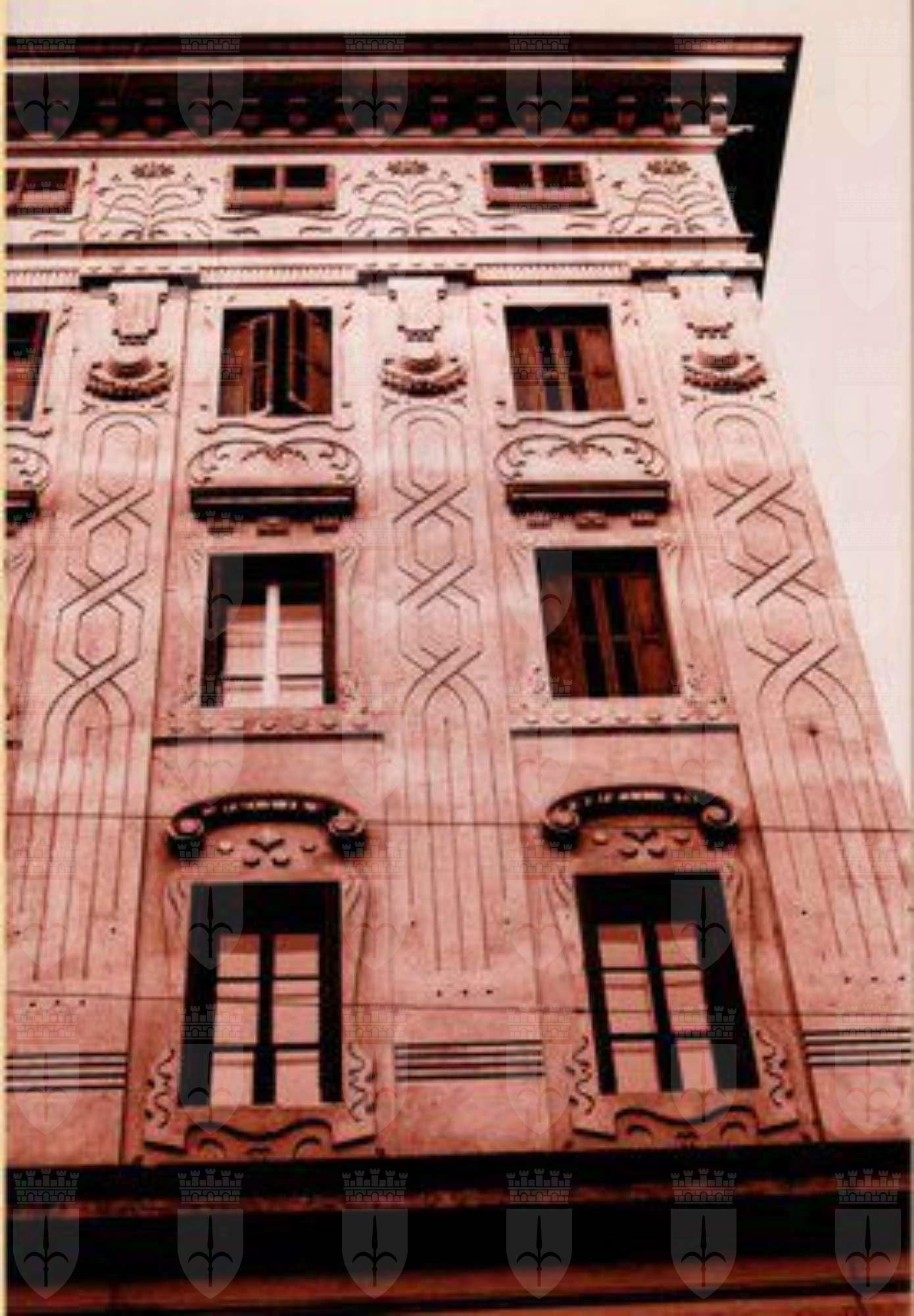 ELEMENTI ORNAMENTALI (esterno) Motivi floreali e geometrici sono caratterizzano gli intonaci di facciata. LESENE (esterno) Lesene con motivi geometrici incisi e decorazioni circolari a rilievo, che si sviluppano per un'altezza di tre piani. MENSOLE (esterno) Mensole a sostegno dello sporto di linda.