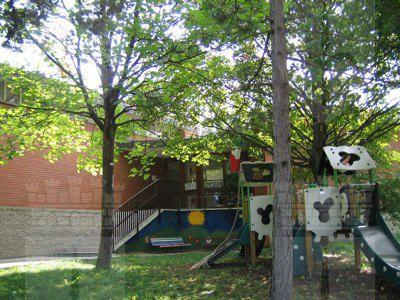 La scuola materna di Borgo San Sergio si trova nel centro dell'omonimo rione. Il fabbricato sorge all'interno di un lotto di forma irregolare; da un lato confina con la Via Curiel ed è separato da essa con una ringhiera; sugli altri lati confina con un parco pubblico delimitato da un muro di contenimento in cemento armato. Le aree esterne sono lasciate a prato; i percorsi interni al giardino sono asfaltati. Il fabbricato si compone di due volumi ad un solo livello architettonicamente identici. Le strutture verticali sono in cemento armato e laterizio; le facciate esterne sono rivestite da elementi in cotto. La copertura è a falde inclinate con struttura in cemento armato e manto di copertura in coppi curvi rossi. L'architettura molto semplice ed è caratterizzata da ampie fasce finestrate.