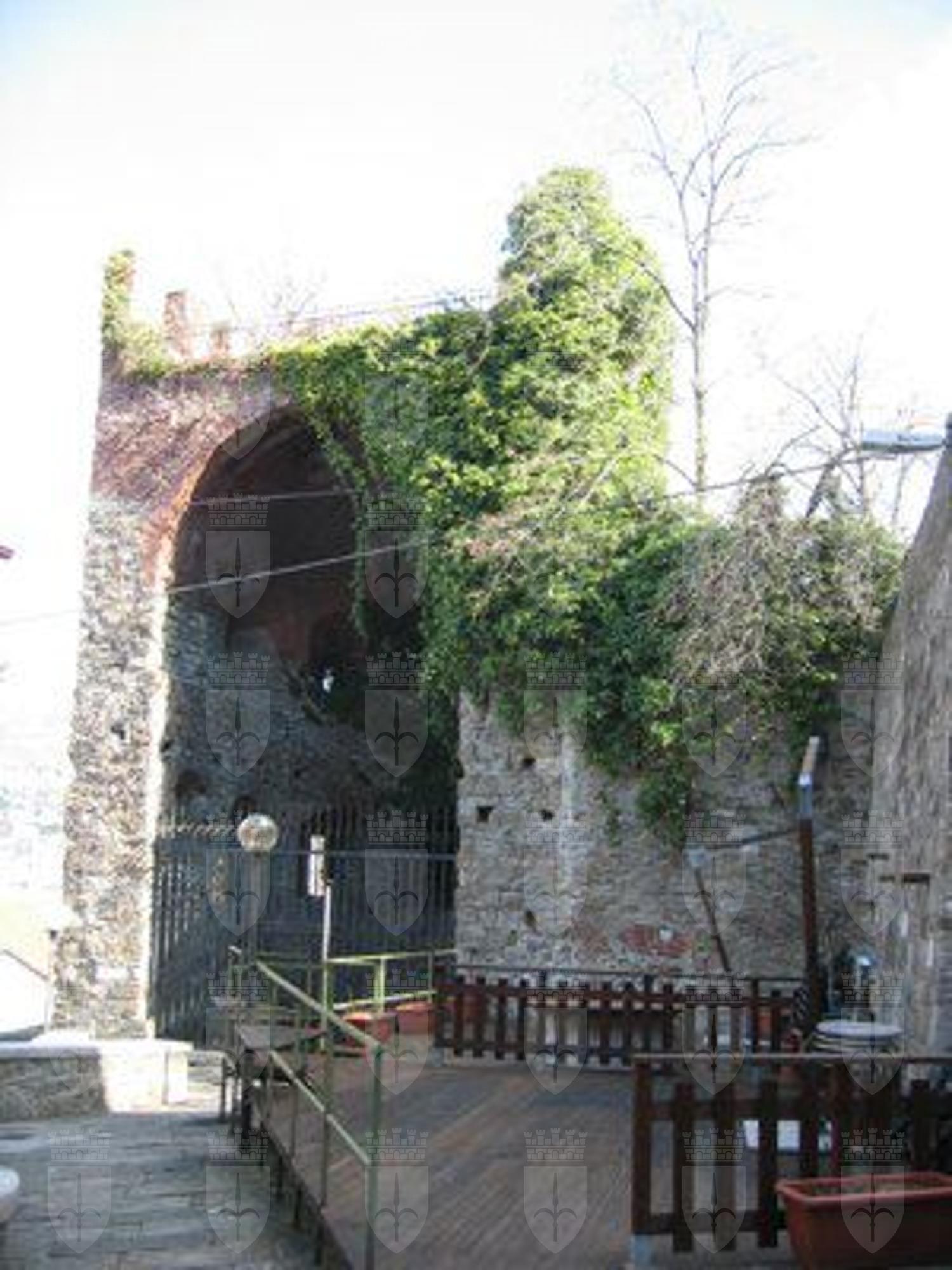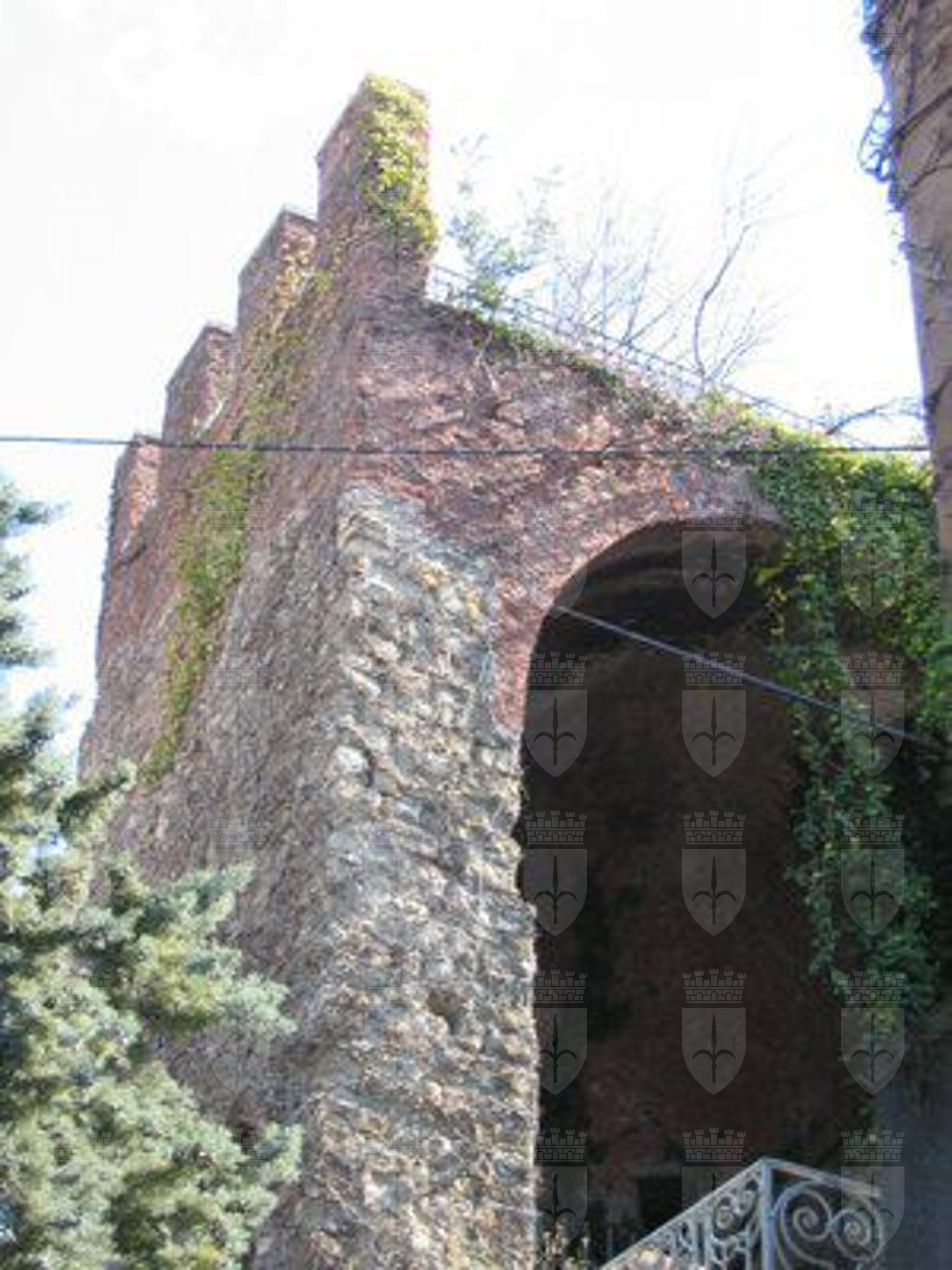 La torre presenta una planimetria a forma poligonale ed è aperta sul lato principale. Costruita in conci di pietra squadrata, è solcata da aperture a feritoia. La parte superiore voltata a botte e la merlatura, ricostruite durante il restauro del 1910, sono realizzate in mattoni per distinguerle dalla struttura originaria. L'accesso è chiuso da una cancellata in ferro.