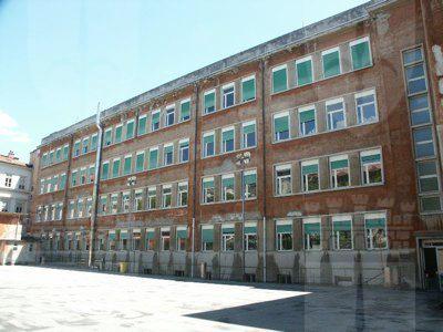 Il fabbricato, posto ai margini del rione di Roiano, dalle linee architettoniche chiaramente risalenti al ventennio fascista, delinea con la sua pianta ad "L" i fronti stradali sulla Via delle Ginestre e sulla Via Montorsino. Su via dei Giacinti corre il muro di recinzione del cortile di pertinenza del complesso scolastico. L'edificio presenta quattro piani fuori terra, più un piano seminterrato; nel cortile di pertinenza un corpo edilizio monopiano assolve alle funzioni di palestra, collegata a mezzo di un apposito passaggio coperto al fabbricato principale. La pianta presenta due vani scala, posti agli estremi del braccio lungo della "L" e collegati da un lungo corridoio affacciato sulla Via Montorsino. Le strutture portanti verticali e orizzontali sono in calcestruzzo armato, la copertura è piana. Le scale sono di tipo misto; a tre rampe quella principale, con rampe laterali appoggiate su travi inclinate in calcestruzzo armato e rampa centrale appoggiata su putrelle metalliche; quella secondaria semplicemente del tipo appoggiato su putrelle metalliche.