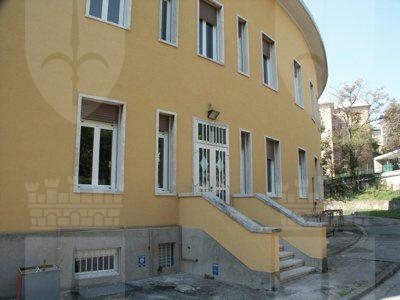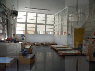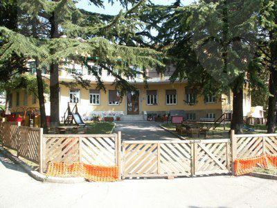 Il fabbricato, del tipo isolato su lotto di pertinenza, si inserisce in una zona periferica della città di Trieste, caratterizzata da alti fabbricati residenziali posti su lotti di pertinenza con giardino. Il corpo di fabbrica stereometrico, sviluppato su due piani fuori terra più un livello interrato, è progettato su una pianta a forma di settore circolare ed espone la facciata principale verso sud. La composizione di facciata sottolinea gli elementi orizzontali: la fascia basamentale, il balcone del primo piano e la linda in aggetto. La struttura è in muratura portante, con solai in laterocemento e balconi sporgenti con solette in calcestruzzo armato. La copertura è piana. La distribuzione interna avviene a partire da un atrio passante posto in posizione centrale, lungo un corridoio ad arco che attraversa tutta la lunghezza del fabbricato. Il vano scala, posto in prossimità dell'affaccio nord, è accessibile direttamente dall'atrio di ingresso. Le aule della scuola materna sono posizionate al primo piano, con affaccio a sud, sulla terrazza. Al piano terra sono sistemati gli uffici ed i principali spazi collettivi. Il piano interrato ospita tutte le funzioni di servizio e gli apparati tecnologici.