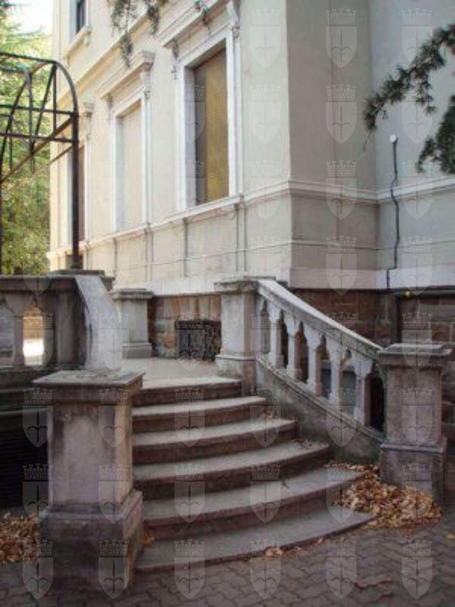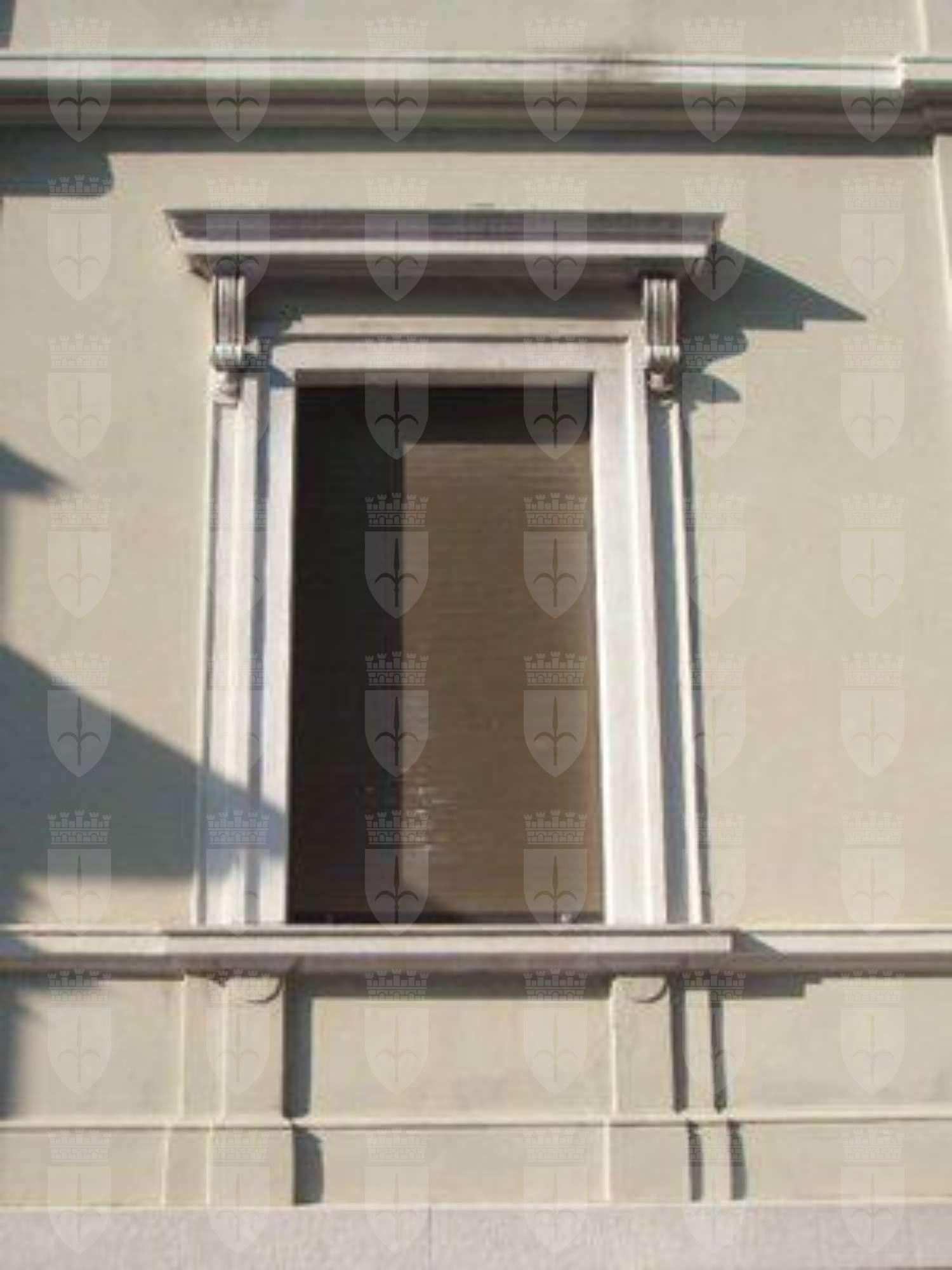 STEMMA Al centro della grata metallica del sopraluce del portone d'ingresso vi sono due iniziali in ferro "JP". CORNICE Sotto la linea di gronda, lungo tutto il perimetro dell'edificio, si sviluppa una fascia con decorazioni lapidee in rilievo, raffiguranti ghirlande, elementi vegetali e nastri.