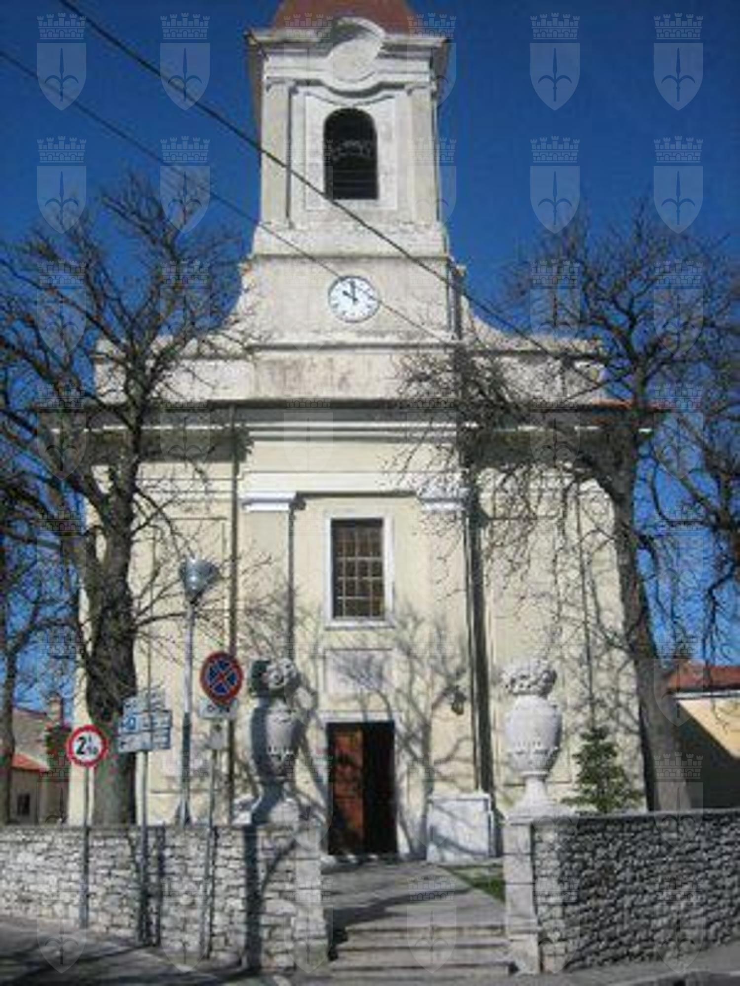 L'Agapito descriveva il villaggio di Opicina come un paesello che, al limitare del XIX secolo, contava poco più di 800 anime sparse in 121 case. L'insediamento, sviluppatosi al margine della nuova strada commerciale per la Germania, aperta nel 1780 per facilitare lo scambio commerciale tra i due stati, grazie all'intervento dell'allora governatore conte Carlo de Zinzerdorf, era quindi il primo abitato che si poteva incontrare uscendo da Trieste verso nord. L'etimologia della parola Opicina, voce slava che rimanda al concetto di "comunità", parrebbe aver dato il nome alla parrocchia lì esistente già nel 1622. In realtà testimonianze della presenza di una ben più antica cappellania risalirebbero addirittura al XIV secolo. Notizie più certe risalgono, invece, al 1466 allorquando in un documento testamentario, una certa Agnese Babich lasciava al Capitolo la propria casa di Opicina a condizione che vi abitasse il vicario. E' certo che nel 1622 la chiesa, per le sue precarie condizioni architettoniche, fosse soggetta e sottoposta ad un intervento di restauro risolutivo che andò a modificare la sua struttura originaria. A ricordo dell'evento fu posta un'iscrizione, oggi purtroppo scomparsa, che ricorda i lavori eseguiti sotto il vescovato di fra' Rinaldo Scarlicchio da Monfalcone: "ANTIST.ET COM. TERG/ RENALD. SCARLICH/ A. SAL. MDCXXII/ PROCVRANTE/ HPX. RADOEVICH. PLEB". Pare che i lavori si prolungassero più del dovuto, se è vero che nel 1652 i sindaci della parrocchia di Opicina rivolsero una supplica al Capitolo e alle autorità cittadine sottolineando che la chiesa cadeva letteralmente a pezzi. I lavori del 1622 comportarono una sostanziale modifica dell'edificio originario con l'aggiunta di una sagrestia e di un campanile sulla facciata. Alcuni restauri vennero effettuati sul finire del XVIII secolo allorquando un fulmine, colpendo il campanile, provocò alcuni danni. Tuttavia il crescente numero di fedeli e le ridotte dimensioni del fabbricato imposero al Comune la necessità di ricostruire totalmente l'edificio che, di fatto, avvenne a spese della città di Trieste e dei suoi fedeli e soprattutto grazie all'intercessione del conte governatore Sigismondo de Lowasz, nel 1805, così come si evince dall'iscrizione posta sopra il portale d'ingresso della chiesa:"TEMPLUM.HOC/AERE.CIVICO.ET.PIORVM.LARGITATE/FUNDITUS.REAEDIFICATUM/IMPERANTE.CAESARE.AVGVSTO.FRANCISCO.II/ET/SIGISMONDO.COMITE.A.LOWASZ/TERGESTE.GUBERNANTE/A.R.S.MDCCCV". Tra tutti i progetti presentati, il Comune prese in considerazione quello dell'allora ispettore delle fabbriche, Giuseppe Colnhuber, che prevedeva il parziale riutilizzo delle strutture esistenti da cui si intendeva ricavare la sagrestia ed il presbiterio. Il 2 maggio 1805 venne così posta la prima pietra. Venne conservata, del vecchio edificio, solo la parte riservata oggi a sagrestia. Il nuovo edificio, composto da un'unica navata, si eleva ad un'altezza di 11 metri ed ha un presbiterio a pianta rettangolare. All'esterno fa bella mostra di sé il campanile neoclassico con inserti barocchi italiani, riallacciandosi, nel suo aspetto, alla tipica architettura salisburghese e austriaca. L'interno del fabbricato, alquanto ricco nei suoi arredi liturgici, è piuttosto luminoso ricevendo luce da sei finestroni. Colpisce subito il visitatore l'altare maggiore con la Pala dedicata a S. Bartolomeo e l'altare della Vergine in stile barocco.