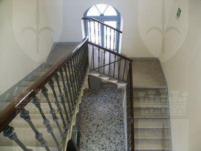 Il prospetto principale è suddiviso orizzontalmente in due parti; una fascia basamentale in bugnato di intonaco grezzo color grigio in corrispondenza del piano seminterrato e una fascia superiore trattata ad intonaco liscio color rosa in corrispondenza del piano terra e primo. Un ampio portale in legno massello decorato verniciato grigio con sopraluce semicircolare vetrato segna l'asse di simmetria della facciata ed è affiancato da due paraste con capitello corinzio. I fori architettonici laterali, sono decorati da specchiature sottofinestra in intonaco color beige e edicole con capitelli corinzi ed arco a tutto sesto. La linea dei davanzali e quella dell'imposta delle volte di cornice delle finestre sono segnate da modanature continue lungo l'intera facciata. Il ritmo dei fori è accentuato da piccoli occhi circolari posti poco sopra le aperture del piano terra rialzato. I serramenti in legno verniciato color antracite ripropongono inalterati i materiali e le tipologie originali. Inferriate decorative in ferro battuto proteggono le finestrature a doppia anta a tre specchiature cono sopraluce semicircolare. Il coronamento a sporgere è segnato da due fasce continue modanate trattate in intonaco color beige a spiccare sullo sfondo rosa dell'intonaco di facciata. I pluviali in lamiera verniciata color testa di moro scendono esternamente sino a metà facciata, quindi si inseriscono nella muratura. La copertura a doppia falda presenta un manto in coppi curvi rossi uso Trieste. Le facciate postiche estremamente semplici, mostrano fori architettonici privi di ogni ornamento e una superficie trattata ad intonaco liscio color porpora dal piede alla gronda. Serramenti di tipologia simile a quella del fronte principale sono posti in corrispondenza dell'appartamento del custode con l'aggiunta di avvolgibili in color verde. In corrispondenza dell'aula della palestra ampie finestrature archivoltate a quattro ante a cinque specchiature con sopraluce semicircolare danno luce all'interno e segnano il ritmo di facciata in alternanza ai contrafforti strutturali che segnano verticalmente il prospetto lungo; un breve ponte metallico esterno mette in comunicazione il ballatoio al primo piano della palestra principale con il giardino sul lato sud. Nel cortile interno trova posto una vera da pozzo in pietra intonacata esternamente. Internamente l'atrio e la scala di accesso al piano terra rialzato sono pavimentati con i masselli originali in pietra di Aurisina. I corridoi di distribuzione presentano una pavimentazione in battuto di graniglia e cemento; le superfici verticali sono semplicemente intonacate in color bianco. L'atrio al piano terra presenta uno spazio distributivo a pianta centrale coperto da una volta ad ombrello. La grande aula della palestra, pavimentata in parquet ligneo mantiene a vista le strutture di copertura e il tavolato. A metà altezza sui quattro lati dello spazio a forma rettangolare corre un ballatoio ligneo verniciato naturale a sbalzo con mensole a voluta e intradosso rifinito a cassettoni. La trave di bordo del ballatoio presenta decorazioni a grottesche. Il parapetto in legno ad aste verticali segue nella composizione dei sostegni principali il ritmo delle mensole sottostanti, in corrispondenza delle quali tiranti metallici ancorati alle capriate di copertura contribuiscono al sostegno dell'impalcato. Le ampie finestrature archivoltate si aprono a ritmo regolare lungo tutto il perimetro del ballatoio ad esclusione del lato est, in aderenza con il corpo di fabbrica rivolto sulla Via della Valle, dove tre nicchie sulla parete di fondo contribuiscono a mantenere il ritmo delle forature. La scala di accesso al primo piano, con gradini in massello di pietra di Aurisina bocciardata, presenta un parapetto decorato in ferro battuto con corrimano ligneo verniciato naturale. Al primo piano l'intradosso di copertura risulta intonacato su arelle lignee. I rivestimenti dei servizi e delle palestre secondarie sono misti in pvc, gres o piastrelle di ceramica secondo la necessità funzionali e non corrispondono più alle finiture originali.