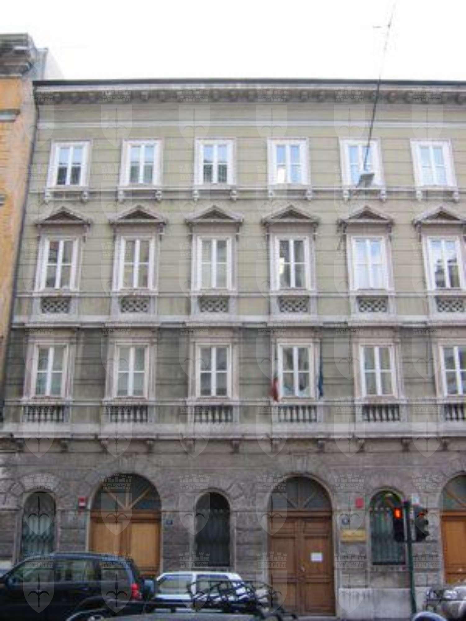 Facciata bipartita orizzontalmente. Fascia inferiore costituita da un basamento rivestito in lastre di pietra bianca naturale calcarea bulinata e da una fascia sempre in pietra naturale lavorata a bugnato rustico fino alla cornice marcapiano del primo solaio sostenuta da mensoline a voluta; archivolti di porte e finestre del piano terreno delineati da lavorazione a bugnato e chiavi di volta dei portali evidenziate da bugnato diamantato. Fascia superiore rifinita ad intonaco color grigio tortora in bugnato liscio a fasce orizzontali fino al coronamento di facciata; marcapiani a livello del primo e secondo solaio e cornici modanate di collegamento orizzontale dei davanzali movimentate dallo sporto delle finestre; marcapiano modanato a livello del solaio di sottotetto e coronamento in pietra lavorata a dentellature rompigoccia con motivo di foglia d'acanto. Manto di copertura del tetto in coppi curvi rossi. Pluviali metallici esterni laterali alla facciata, rientranti nella muratura poco al di sopra della cornice marcapiano del primo solaio. Portone principale ligneo di accesso, a due ante e a sei specchiature, sovrastato da lunetta con telaio ligneo vetrato e semplice motivo geometrico a raggiera; medesima forma e tipologia per i due portoni laterali, ma con porte a due ante e a quattro specchiature. Serramenti vetrati delle finestre ai piani superiori a due ante, non originali, in legno verniciato chiaro; della medesima fattura le finestre ad una sola anta del piano terreno, protette da griglie metalliche verniciate di nero. Fori delle finestre del primo piano decorati da finte balaustre in pietra con motivo a vaso, cornici a lesena e piattabande con fregio centrale rotondo; al secondo piano balaustre in pietra con motivo geometrico a traforo, cornici in pietra modanata, piattabande con fregio centrale quadrato sovrastate da timpani triangolari sostenuti da mensoline a voluta; al terzo piano fori finestra con semplice cornice modanata sostenuta da peducci. L'atrio di ingresso presenta finiture non originali, con pavimento in marmo rosso a riquadri grigio chiaro e rivestimento delle pareti in legno. Finiture interne sobrie, con murature in intonaco liscio bianco. Scale con gradini in pietra bianca bulinata, parapetto originale in ferro verniciato nero con corrimano in legno ed elementi di ringhiera con motivo a losanghe; di epoca successiva il secondo corrimano a maggior altezza e le battute laterali in marmo rosso delle pedate. Finitura originale in graniglia nei pianerottoli intermedi mantenuta fino all'arrivo del primo piano, e qui sostituita come ai piani superiori da pavimentazione in lastre di marmo grigio chiaro. Verso il cortile interno fori finestra rifiniti da semplice cornice in pietra bianca naturale, con serramenti della stessa tipologia di quelli esterni; per le finestre del sottotetto imposta bassa e protezione tramite griglia metallica di recente fattura. Cornice modanata originale per le porte interne, tranne nel sottotetto. Pavimentazione in legno con motivo a spina di pesce negli ambienti interni e nei corridoi; finitura non originale a piastrelle nel sottotetto. Contro-soffitto per il passaggio di impianti tecnologici realizzato in epoche recenti.