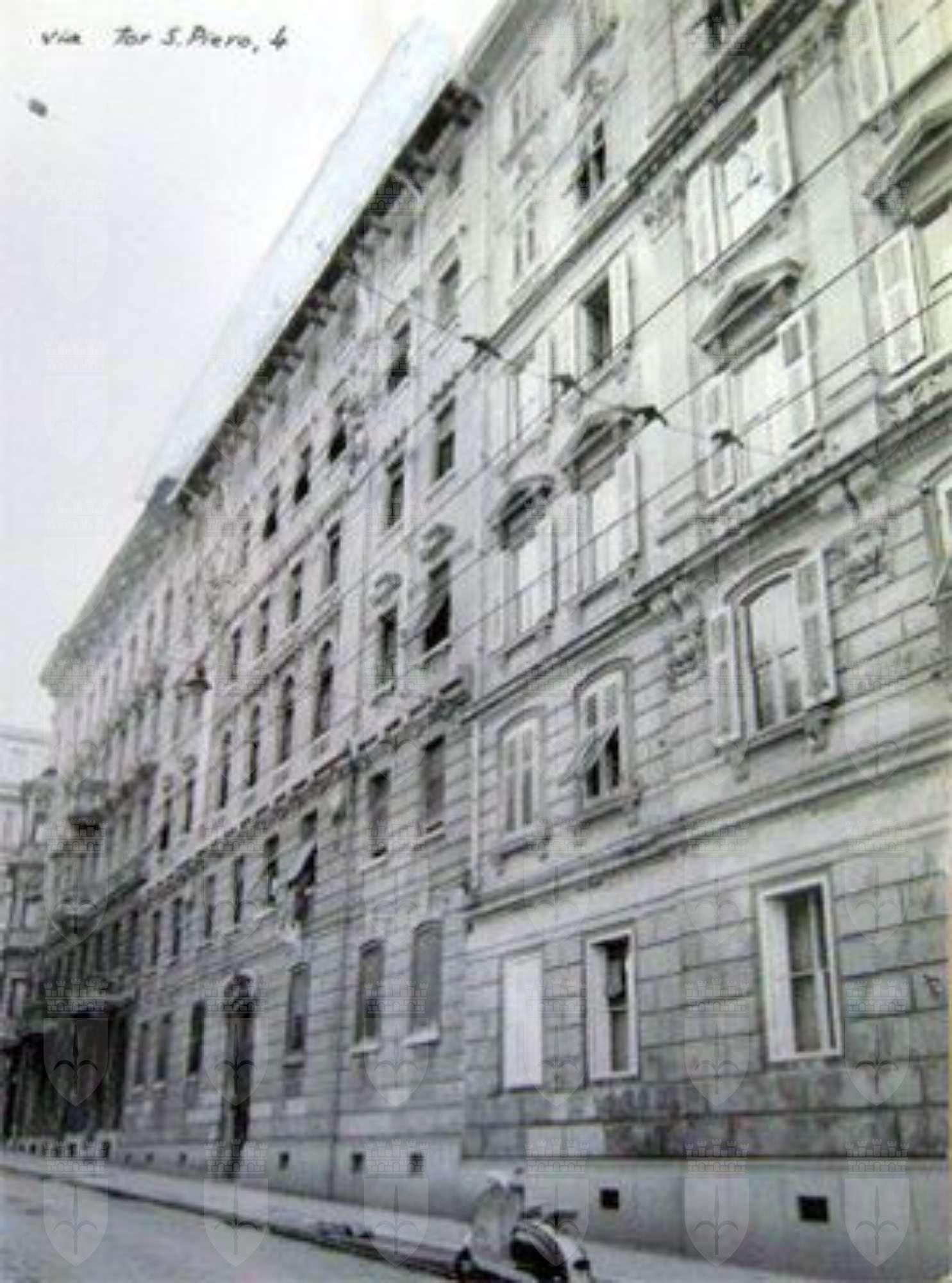 Il 13 dicembre 1904, con decreto N. 7704/04, il Magistrato civico approvava il "progetto per la costruzione di una casa da erigersi sul fondo N. Tav. 2397 di città di proprietà del Sig. P. Boschetti". L'edificio prospetta la sua elegante facciata sulla stretta Via Tor San Piero la cui denominazione, apposta nel 1887, ricorda una torre fortificata, dedicata a San Piero appunto, destinata alla sorveglianza della strada proveniente da Santa Croce e risalente, pare, almeno al XV secolo. Medaglioni, ghirlande, fregi e due lesene di ordine gigante giocano sulla superficie dell'edificio enfatizzando, con un sapiente gioco di chiaro-scuri, rientranze e sporgenze del caseggiato stesso.