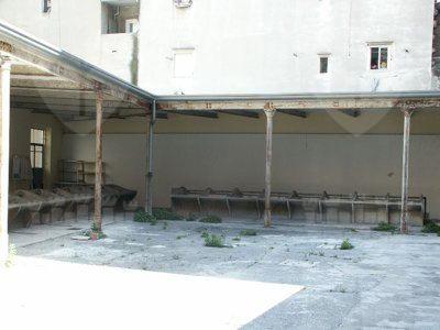 Il fabbricato monopiano disposto a "L" è costituito principalmente da una tettoia a struttura metallica delimitata sul lato strada da una facciata in muratura che si posiziona in continuità con i fabbricati attigui. Un piccolo corpo di fabbrica, nei pressi dell'ingresso ad una delle estremità del lotto ospita i pochi spazi chiusi necessari alla gestione della struttura ora abbandonata. Lo spazio racchiuso tra la struttura della tettoia e il muro del fabbricato esistente sul lotto limitrofo lungo il lato est, costituisce il cortile di pertinenza dell'antico lavatoio.
