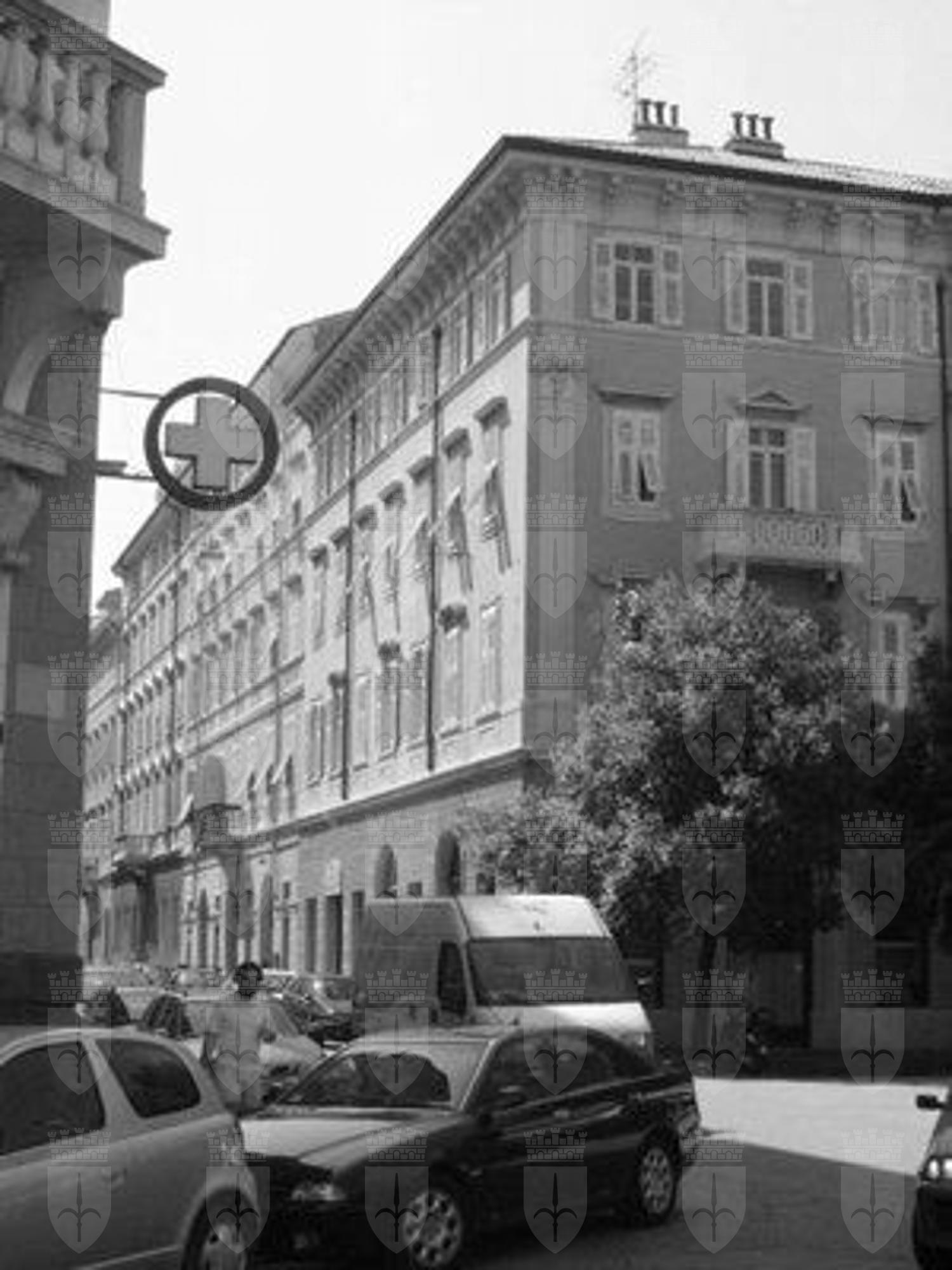 BALAUSTRA (esterno): Balaustra in pietra in corrispondenza dei balconcini del secondo e terzo piano del prospetto principale. LESENE (esterno): Lesene scanalate di ordine gigante con capitello decorato con motivi floreali e teste floreali ad articolare la superficie muraria dell'edificio. CORNICE (esterno): Cornice a mensoloni a coronamento della superficie muraria per tutto il perimetro dell'edificio. LAPIDE (esterno): Lapide recante l'iscrizione "Lascito di Cristoforo Scuglievich nostro grande benefattore, nato a Mostar il 22.IX.1843, morto a Trieste il 9.I.1909" in corrispondenza del portale d'ingresso principale.