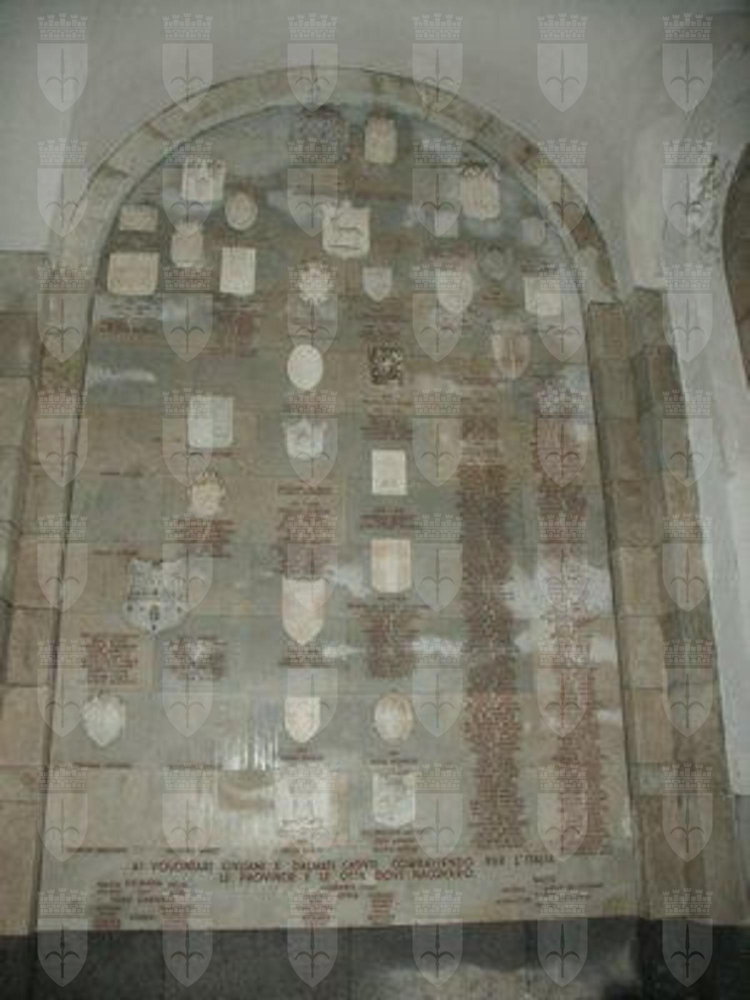 ISCRIZIONE (esterno) Sul serramento di ingresso al piano terra, un'iscrizione a caratteri stampatello maiuscolo in ferro si inserisce tra il sopraluce e le ante del serramento intitolando l'edificio a "CASA DEL COMBATTENTE" ISCRIZIONE (esterno) Sul serramento di ingresso al museo, al piano terra un'iscrizione a caratteri stampatello maiuscolo in ferro si inserisce tra il sopraluce e le ante del serramento intitolando l'edificio a "CIVICO MUSEO DEL RISORGIMENTO". LAPIDE (esterno) Una lapide in granito rosso, posta nel portico davanti all'ingresso della Casa del Combattente, cita: "DA QUESTA CASA IN MEMORIA E IN ONORE DEI MARTIRI DI TUTTE LE FOIBE AUSPICE LA FEDERAZIONE GRIGIOVERDE DALL'ANNO 1895 OGNI DOMENICA ESTIVA SI DIPARTONO I DRAPPELLI DEI SODALIZI PATRIOTTICI PER SALIRE SUL CARSO A DISPIEGARE IL TRICOLORE DELLA PATRIA SUI SACRARI DI BASOVIZZA E DI OPICINA. A TESTIMONIANZA E AD ESEMPIO. A.D.MMI" LAPIDE (interno) Una lapide in pietra Repen nell'atrio di ingresso della Casa del Combattente riporta la dicitura: "QUESTA CASA UMBERTO NORDIO ARCHITETTO IDEO' E PROGETTO' - MCMXXXIV" AFFRESCHI (interno) Affreschi di Carlo Sbisà ornano le nicchie dei saloni del Museo del Risorgimento al primo piano, raffigurando in pannelli allegorici l'Italia, Trieste, Aquileia, Gorizia, Parenzo, Pola, Zara, Fiume e altre città giuliane, istriane e dalmate che furono teatro degli scontri per l'unità della patria. LAPIDI (interno e esterno) Lapidi e busti commemorativi di varia fattura posti negli atri di ingresso, nel portico antistante e nel Sacrario Oberdan, commemorano i caduti delle due guerre mondiali e gli eroi della patria sacrificatisi per l'indipendenza dei territori istriano-dalmati, tra cui Emo Tarabocchia, Silio Valerio, Spiro Xydias, Guglielmo Oberdan, Antonio Baiamonti, LAPIDE (esterno) Alle pareti del sacrario oberdan è riportato il seguente testo: "AI FRATELLI ITALIANI: VADO A COMPIERE UN ATTO SOLENNE ED IMPORTANTE. SOLENNE PERCHE' MI DISPONGO AL SACRIFICIO, IMPORTANTE PERCHE' DARA' I SUOI FRUTTI. E' NECESSARIO CHE ATTI SIMILI SCUOTANO DAL VERGOGNOSO TORPORE L'ANIMO DEI GIOVANI - LIBERI E NON LIBERI - GIA' DA TROPPO TEMPO TACCIONO I SENTIMENTI GENEROSI, GIA' DA TROPPO TEMPO SI CHINA VILMENTE LA FRONTE AD OGNI SPECIE DI INSULTO STRANIERO - I FIGLI DIMENTICANO I PADRI, IL NOME DI ITALIANO MINACCIA DI DIVENTARE IL SINONIMO DI VILE E DI INDIFFERENTE. NO, NON POSSONO MORIRE COSI' GLI ISTINTI GENEROSI! SONO SOPITI E SI RIDESTERANNO. AL PRIMO ALLARME CORRERANNO I GIOVANI D'ITALIA - CORRERANNO COI NOMI DEI NOSTRI GRANDI SUL LABBRO - A CACCIARE PER SEMPRE DA TRIESTE E DA TRENTO L'ODIATO STRANIERO CHE DA TEMPO CI MINACCIA E CI OPPRIME. OH, POTESSE QUESTO MIO ATTO CONDURRE L'ITALIA A GUERRA CONTRO IL NEMICO! ALLA GUERRA SOLA SALVEZZA, SOLO ARGINE CHE POSSA ARRESTARE IL DISFACIMENTO MORALE SEMPRE CRESCENTE DELLA GIOVENTU' NOSTRA. ALLA GUERRA GIOVANI, FINCHE' SIAMO ANCORA IN TEMPO DI CANCELLARE LE VERGOGNE DELLA PRESENTE GENERAZIONE COMBATTENDO DA LEONI. FUORI LO STRANIERO! E VINCITORI E FORTI ANCORA DEL GRANDE AMORE DELLA PATRIA VERA, CI ACCINGEREMO A COMBATTERE ALTRE BATTAGLIE, A VINCERE PER LA VERA IDEA, QUELLA CHE HA SPINTO MAI SEMPRE GLI ANIMI FORTI ALLE CRUENTI INIZIATIVE PER L'IDEA REPUBBLICANA. PRIMA INDIPENDENTI POI LIBERI. FRATELLI D'ITALIA! VENDICATE TRIESTE E VENDICATEVI! UDINE, SETTEMBRE 1882, GUGLIELMO OBERDAN" LAPIDE (esterno) Alle pareti della cella in cui fu imprigionato Guglielmo Oberdan è riportato il seguente testo: "GUGLIELMO OBERDAN, NATO A TRIESTE L' 1 FEBBRAIO 1858, ARRESTATO A RONCHI IL 16 SETTEMBRE 1882, RICHIUSO IN QUESTA CELLA IL 7 OTTOBRE, CONDANNATO A MORTE IL 10 OTTOBRE, VIDE CONFERMATA LA SENTENZA IL 4 NOVBEMBRE, SALI' AL PATIBOLO E ALLA GLORIA IL 20 DICEMBRE 1882" ELEMENTO ORNAMENTALE (esterno) Sotto al porticato, in un abside ricavata entro il perimetro del sacello, sorge un gruppo statuario bronzeo dedicato a Guglielmo Oberdan, opera di Attilio Selva. ELEMENTI ORNAMENTALI (esterno) Sulle pareti esterne della cella Oberdan sono affissi gli scudi e gli stemmi delle città che con i loro contributi di eroi e combattenti caduti, contribuirono all'unità della patria.