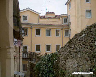 L'edificio prospetta l'androna degli Orti, una denominazione che risale alla fine del Settecento e indicava un viottolo cieco posto a ridosso delle antiche mura cittadine. L'immobile è completamente addossato, nel suo lato posteriore, ad un insieme di stabili settecenteschi le cui facciate prospettano piazza Brabacan e via del Trionfo. Presenta un impianto planimetrico irregolare, in quanto la costruzione si inserisce fra edifici preesistenti e segue l'andamento leggermente incurvato della parte iniziale dell'androna. In alzato si sviluppa per cinque piani fuori terra e un seminterrato. Nel 1828 venne indicato come casa e campagna Scarpa nella documentazione dell'Ispezione delle Civiche Fabbriche. Nel 1999 il fabbricato, che versava in stato di grave degrado, è stato oggetto di un intervento di restauro che lo a reso adeguato ad ospitare una struttura dell'azienda sanitaria. L'edificio con annesso orto, la cui pertinenza all'immobile è testimoniata sin dal 1825, è dichiarato di interesse culturale limitatamente al sedime, ai volumi , alle altezze e ai prospetti.