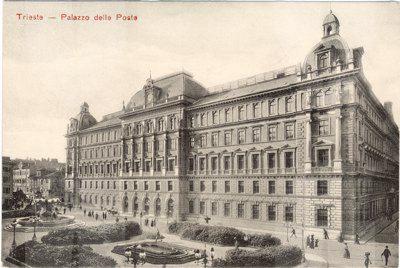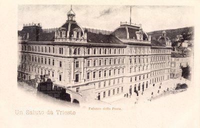 L'imponente palazzo venne costruito tra il 1890 e il 1894 su progetto dell'architetto viennese Friedrich Setz, sull'area in precedenza occupata dall'edificio della Dogana. Costruito dall'impresa Gregersen e Schwarz sotto la direzione dell'ingegnere Guido Levi, l'immobile costituisce un significativo esempio di architettura eclettica nell'ambito della tipologia comune agli edifici pubblici austriaci dell'epoca. Il palazzo venne concepito fin dall'inizio per ospitare sia gli uffici postali e telegrafici sia quelli della finanza, per cui all'interno è strutturato in due corpi distinti, con ingressi separati rispettivamente in piazza Vittorio Veneto e Largo Panfili. Sui prospetti laterali si aprono i portoni per il transito dei carri postali. All'ultimo piano della facciata principale sono collocate alcune statue. A coronamento della parte centrale della facciata vi è una copertura a cupola al centro della quale è collocato un abbaino delimitato da due erme e con un orologio. Cupole si ergono anche agli angoli della costruzione. All'interno si apre un atrio spazioso da cui parte, al centro, un grande scalone che da accesso al vestibolo superiore. Al primo e al secondo piano corridoi con arcate a crociera si affacciano sul vestibolo.