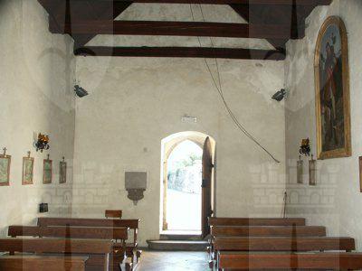 La piccola cappella di S. Rocco, con orientamento nord-ovest - sud-est, si posiziona al centro di uno spazio internamente alla biforcazione di una strada in due percorsi secondari, al margine sud-est del borgo storico di S. Croce. Percettivamente conclude con la propria torre campanaria uno degli assi viari interni al borgo, che si dipartono dalla chiesa principale e dal cimitero. La distribuzione interna è semplice, ad aula, con abside terminale. La composizione seicentesca della facciata raggruppa la torre campanaria e l'ingresso principale in un unico elemento architettonico, che segna la simmetria principale della facciata. La struttura verticale è costituita da muratura portante in pietra bianca sbozzata, posata a corsi irregolari; la copertura a falde è costituita da una struttura lignea a capriate a sostegno di un manto in lastre di pietra calcarea.